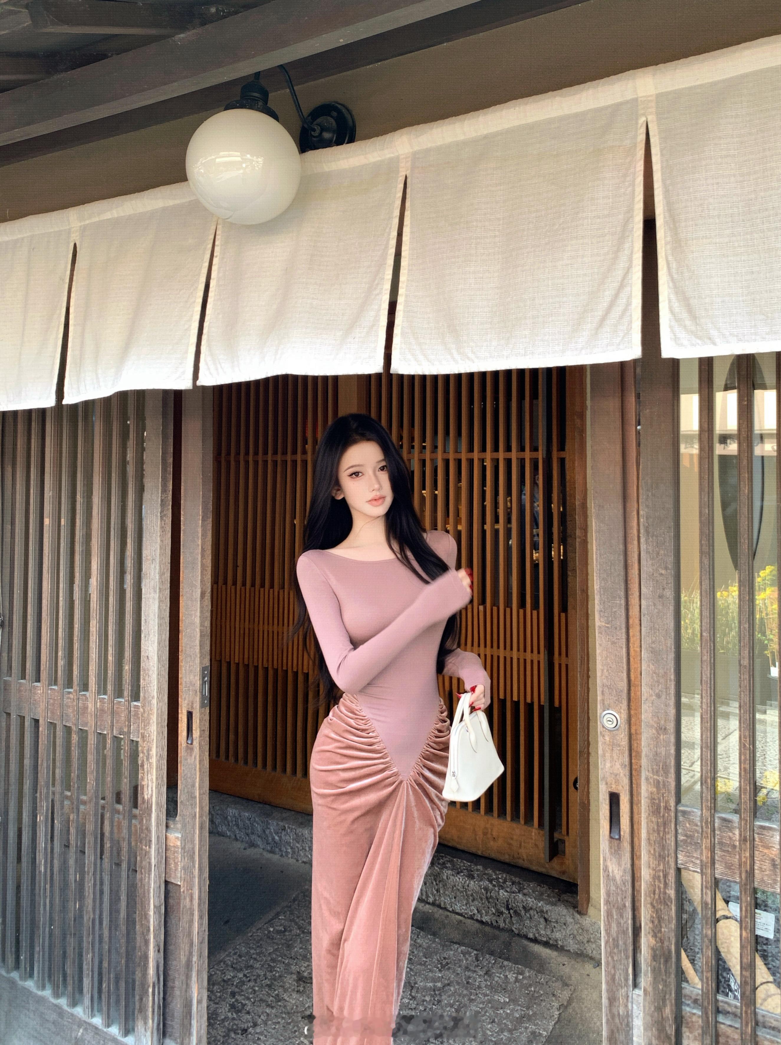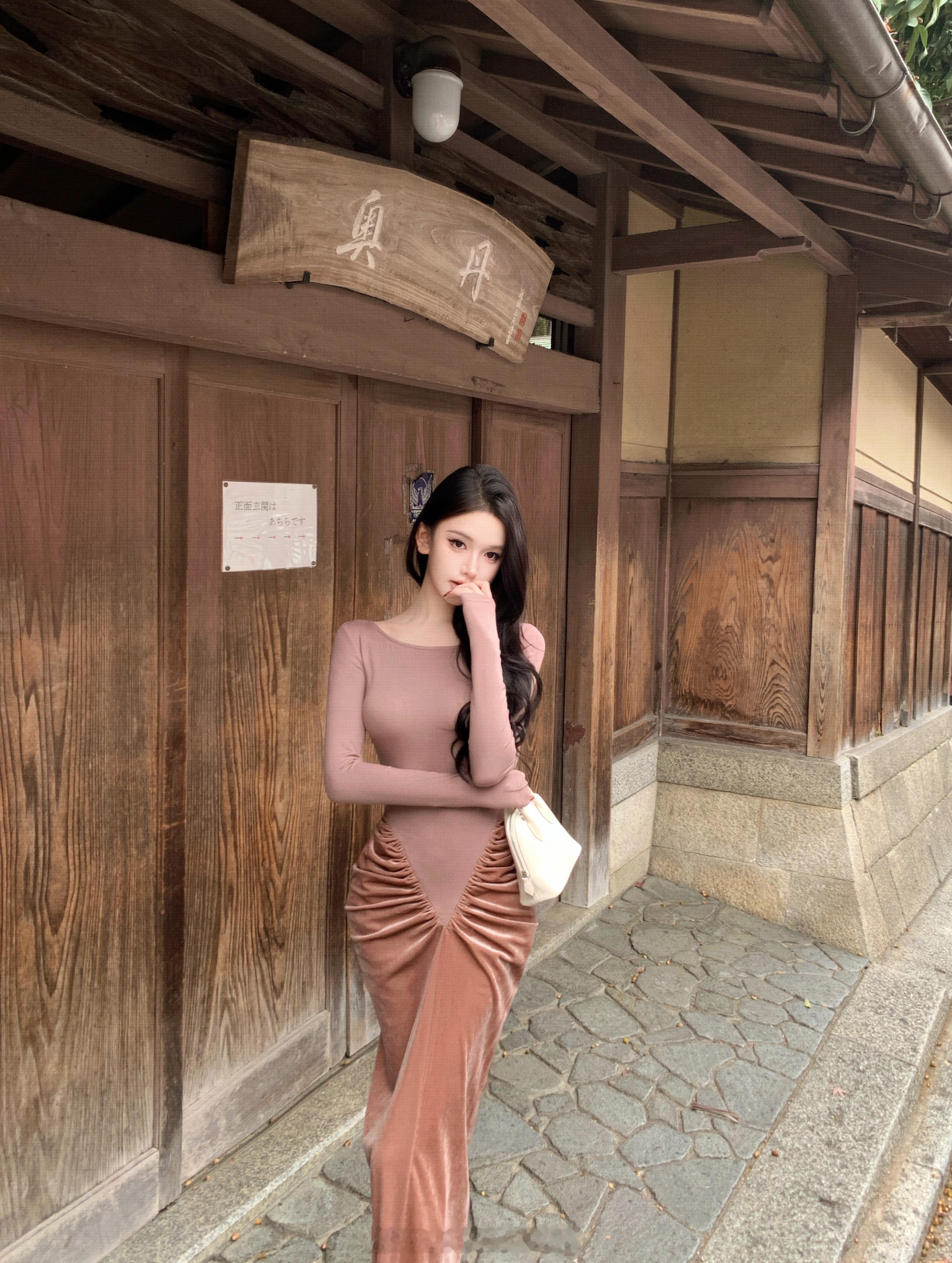 同款雾粉色来咯!!🫶🏻🫶🏻要说起做修身裙那是真的没有瓶颈期针织和丝绒的拼接在显瘦的同时又没有了显印的烦恼~