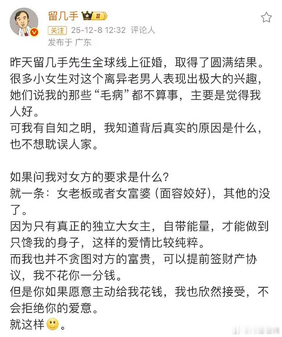 留几手全球征婚留几手什么时候结束这场闹剧,看不得前妻比自己过得好就这样到处蹦哒,