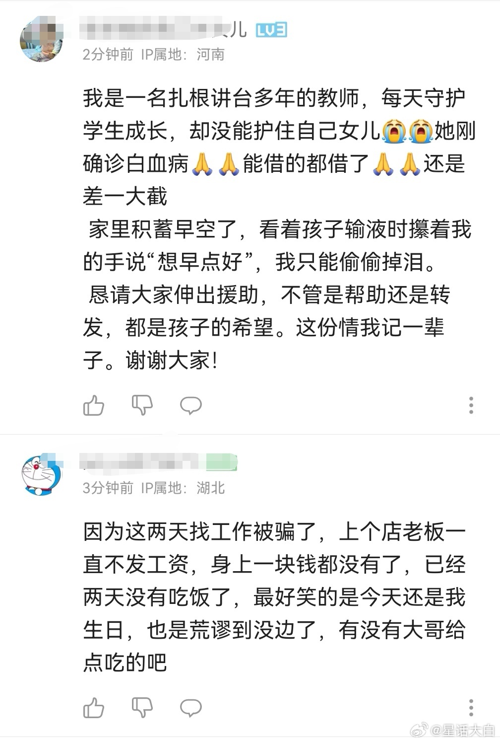 今天网络诈骗是集体刷KPI么,今天已经在视频评论区里拉黑几十条类似评论了,最近网络诈骗开始玩这套装可怜套路。我20多年前上初中的时候,遇到一个女的带着一个小孩说自己被人骗了,身无分文快饿死了,让我给她钱买点吃的,当时我想着就直接想去小卖部给她买个面包,她反而不要,就说要钱,当时我就感觉很奇怪,就直接走掉了,当然后来我也知道这就是典型的骗钱套路,类似套路利用人的善意,生命力顽强,长期存在,现在更是从线下转移到线上。大家看到类似文案,还是不要上当,虽然说的确可能有真的需要帮助的人在网络上求助,但起码类似文案今天一天就有几十个跑到我评论区里发,这显然就只是骗钱的。这种利用人善意的诈骗套路是很可恶的,因为它挤压了真正有需要帮助人的求助空间。