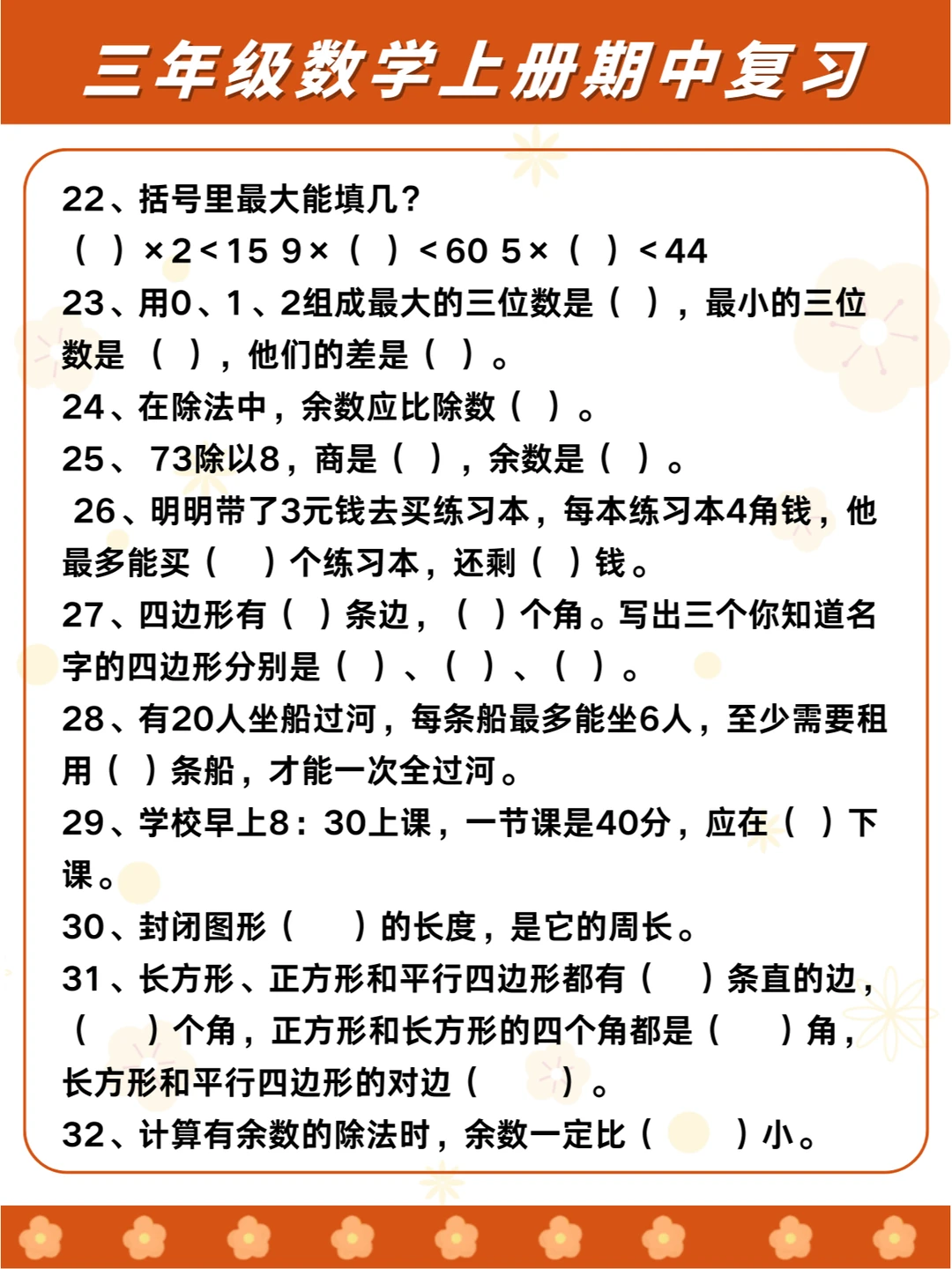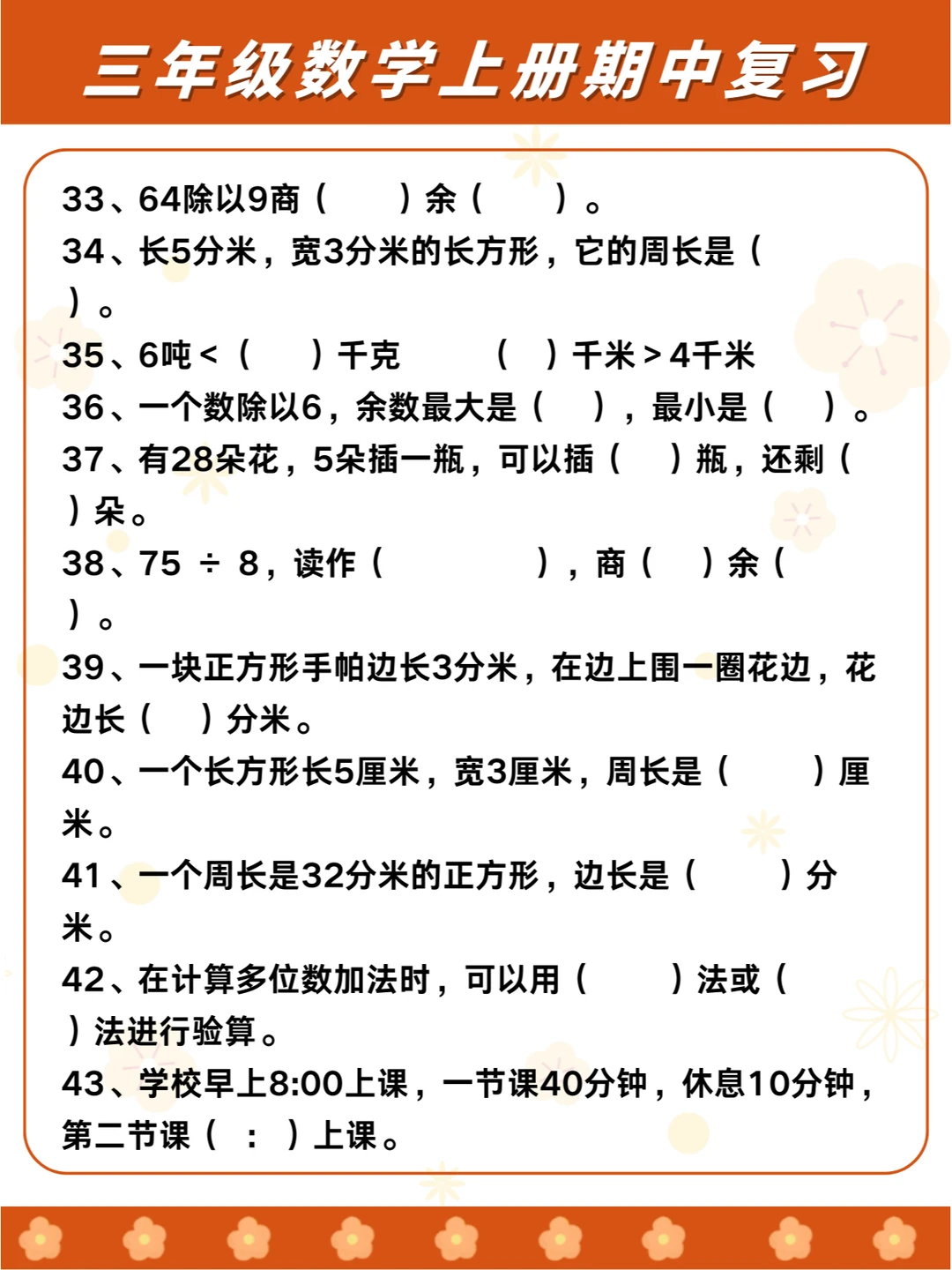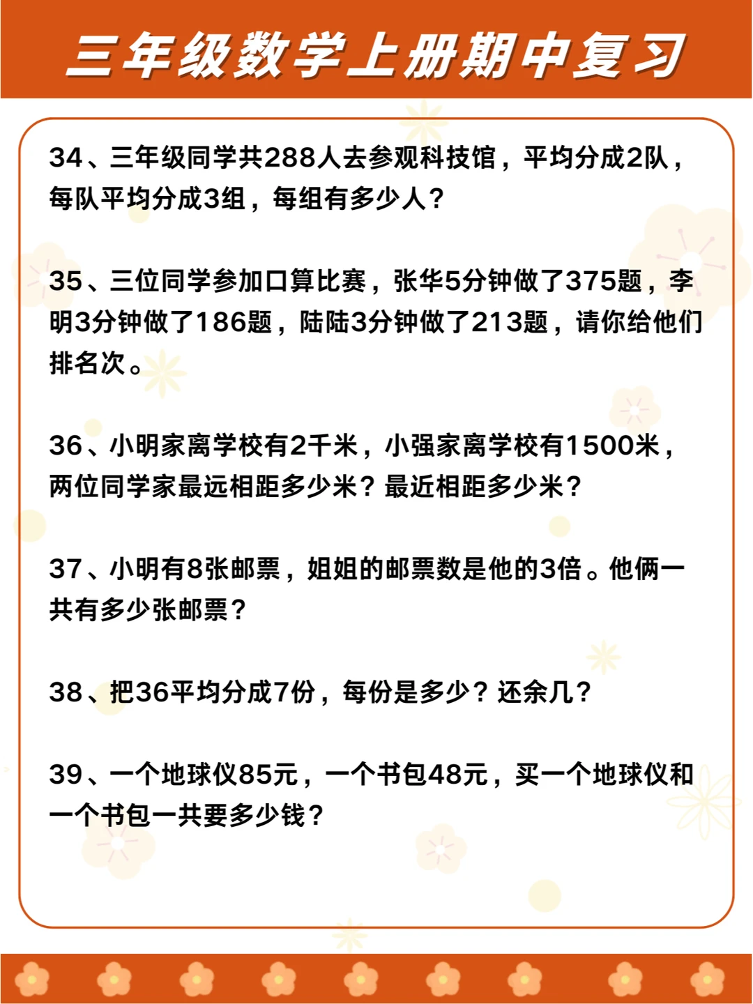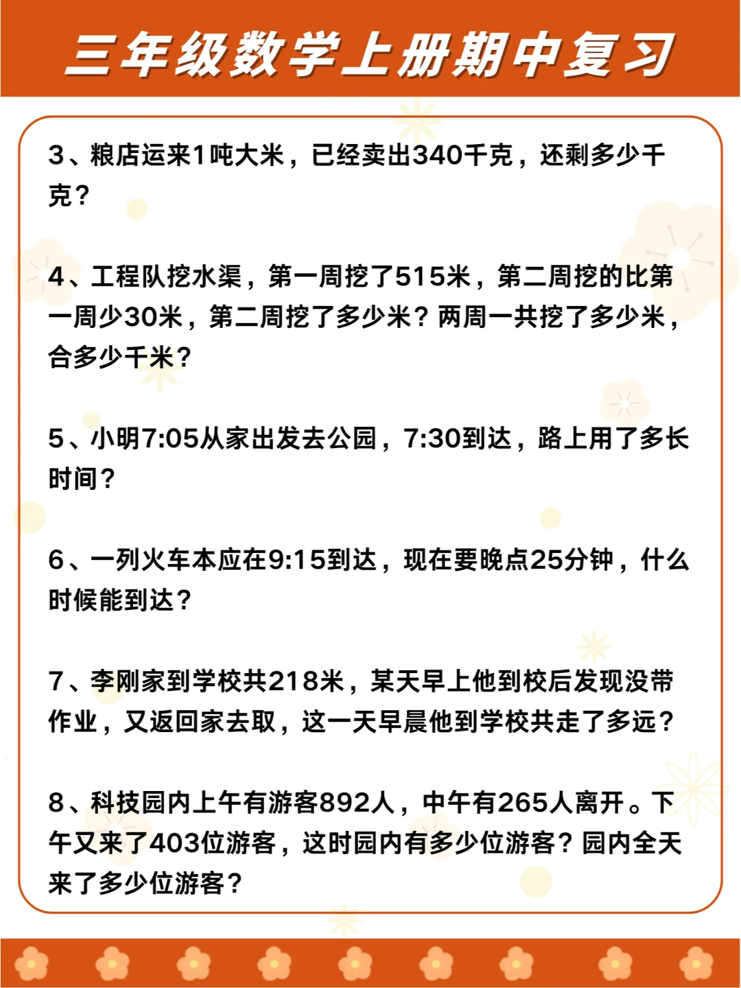 抓紧练⚠️三年级上数学期中复习专项攻克❗