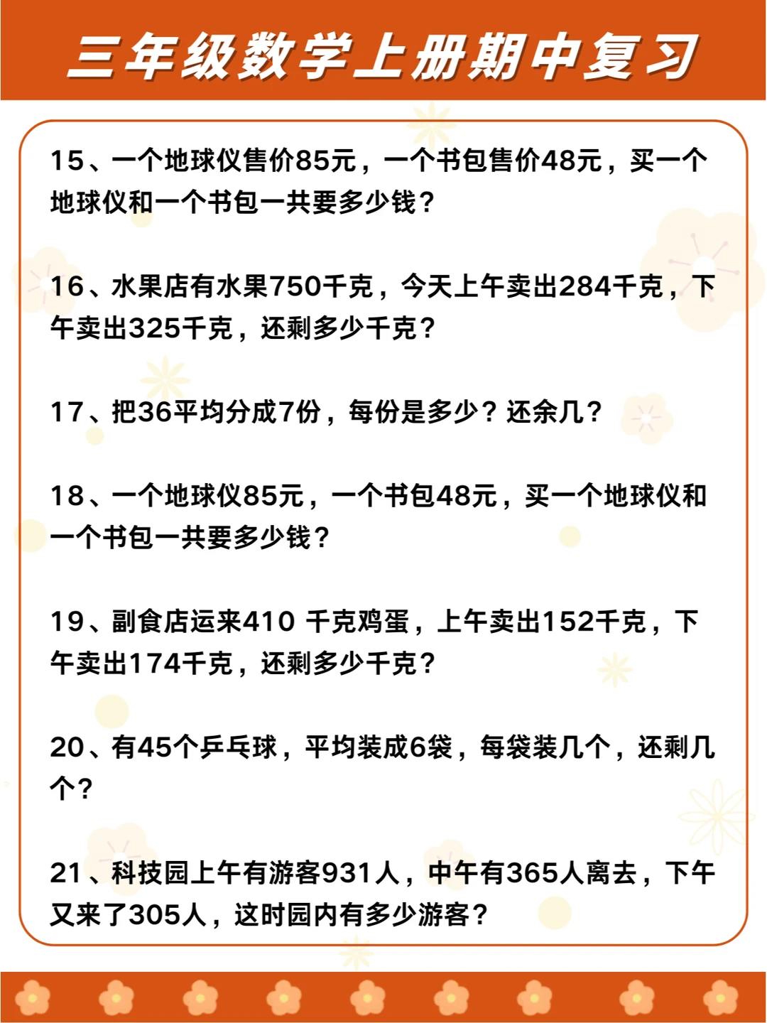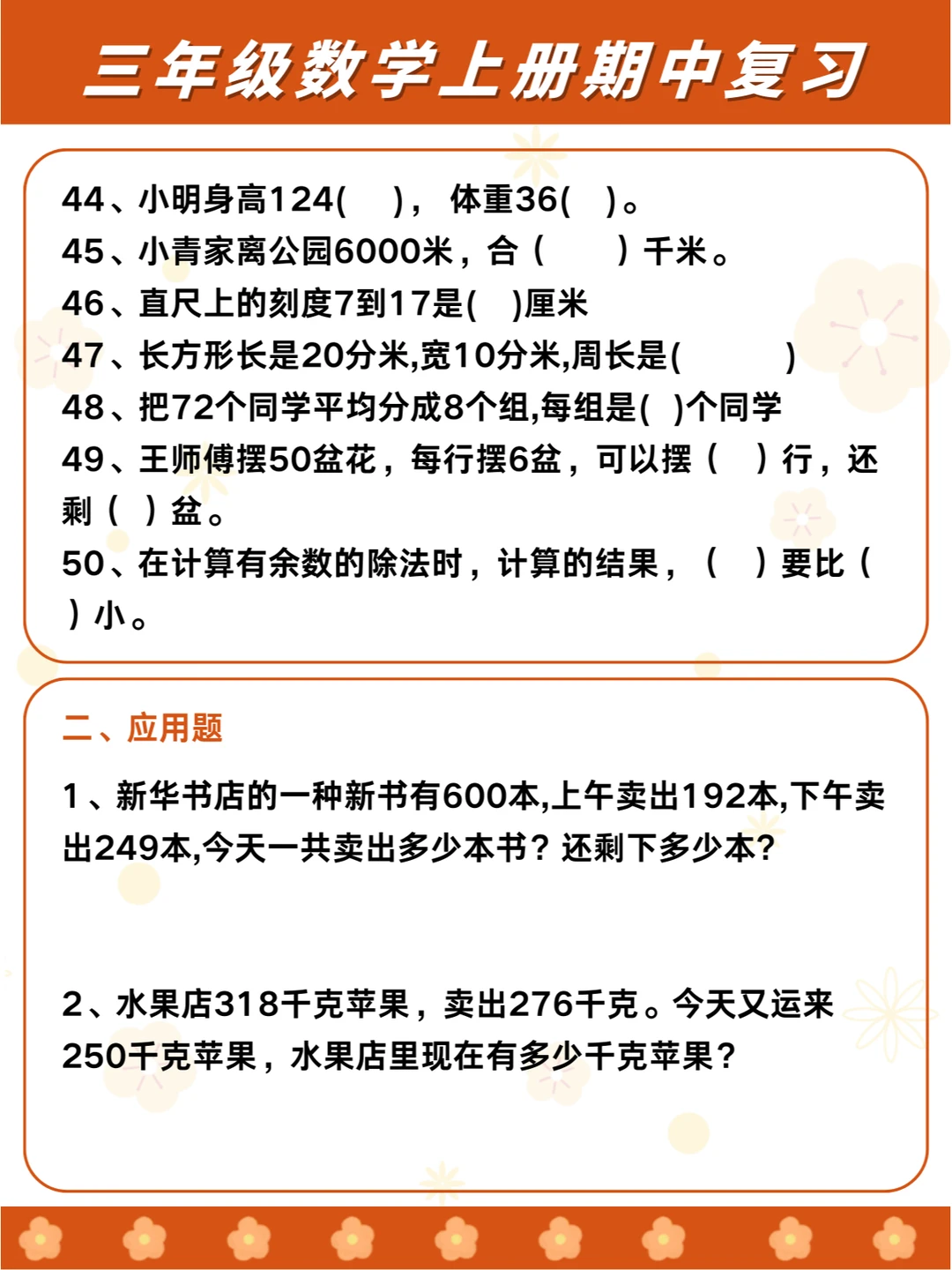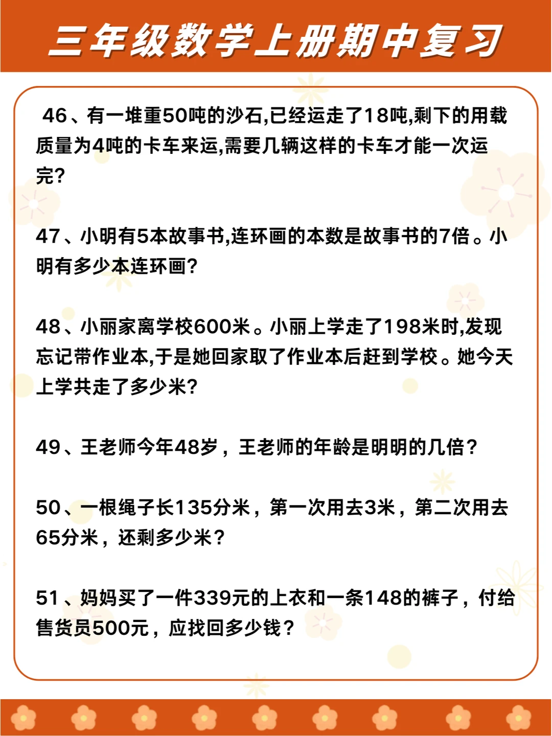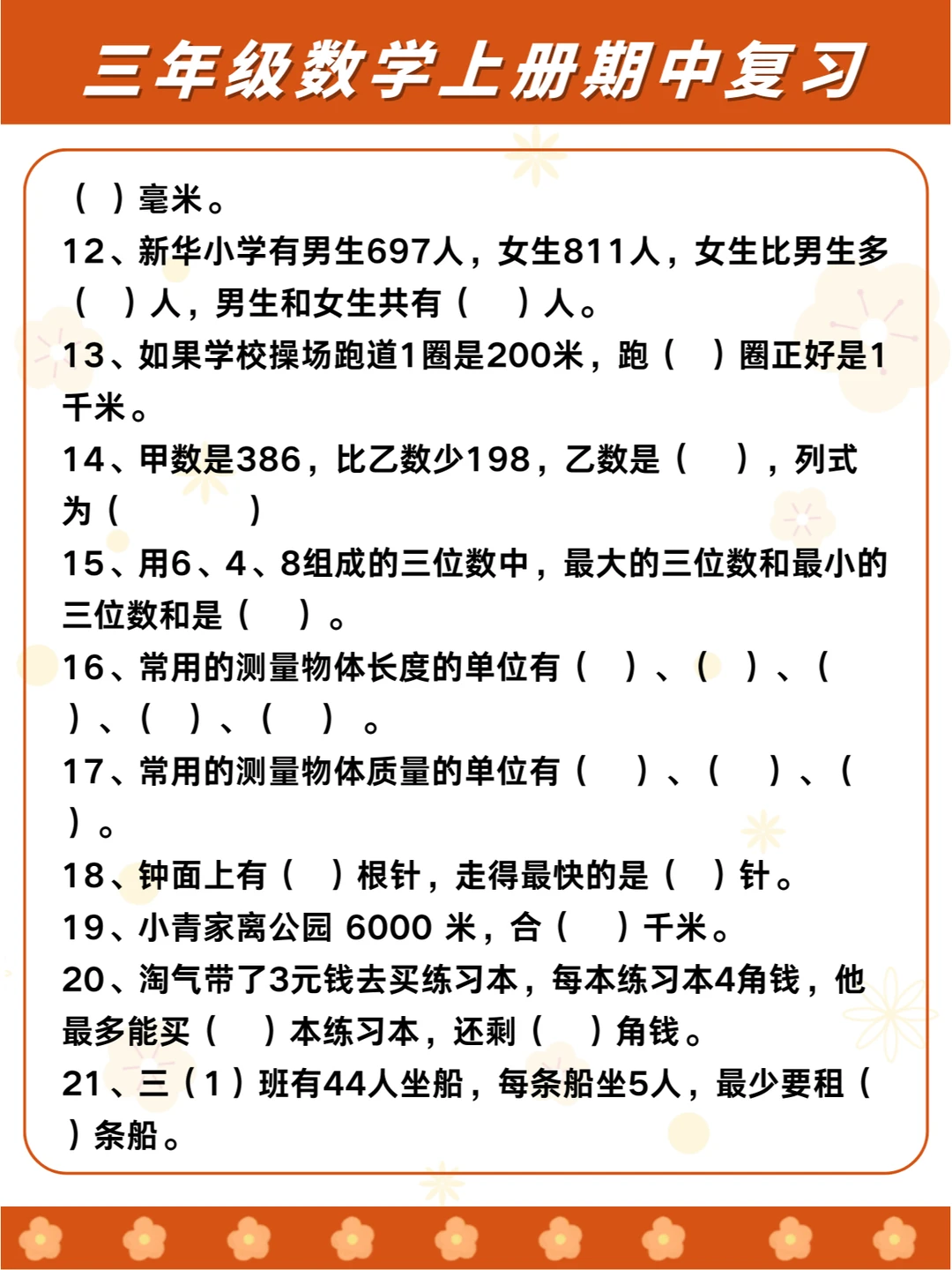 抓紧练⚠️三年级上数学期中复习专项攻克❗