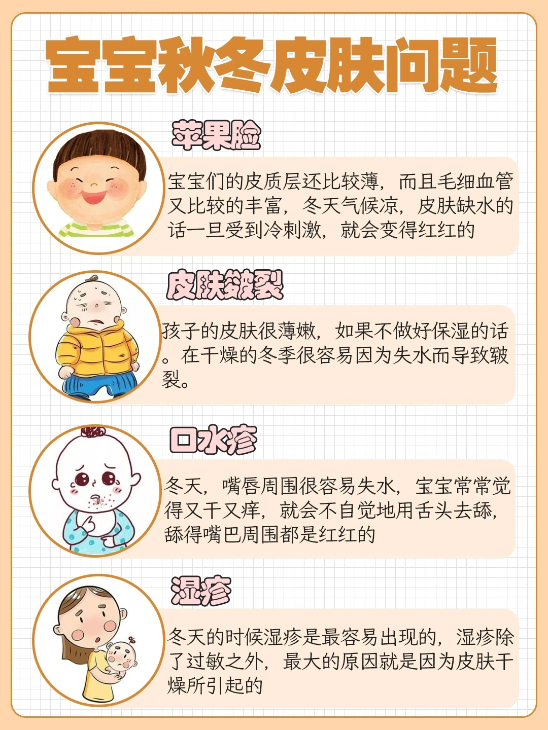 上看到好多十一来武汉旅游的人吐槽武汉的气温,头两天把人给热死,后两天把人给冻死,一天经历四季的感觉太🆒了😂不得不说这是事实,前两天还在开空调,这两天已经盖厚被子了,太冷了‼️家里有小孩子的1⃣️定要多注意噢,宝宝年龄小皮肤比较脆弱,避免出现皮肤敏感之类的问题哈,分享下宝宝👶秋冬应该如何护理皮肤👇🏻