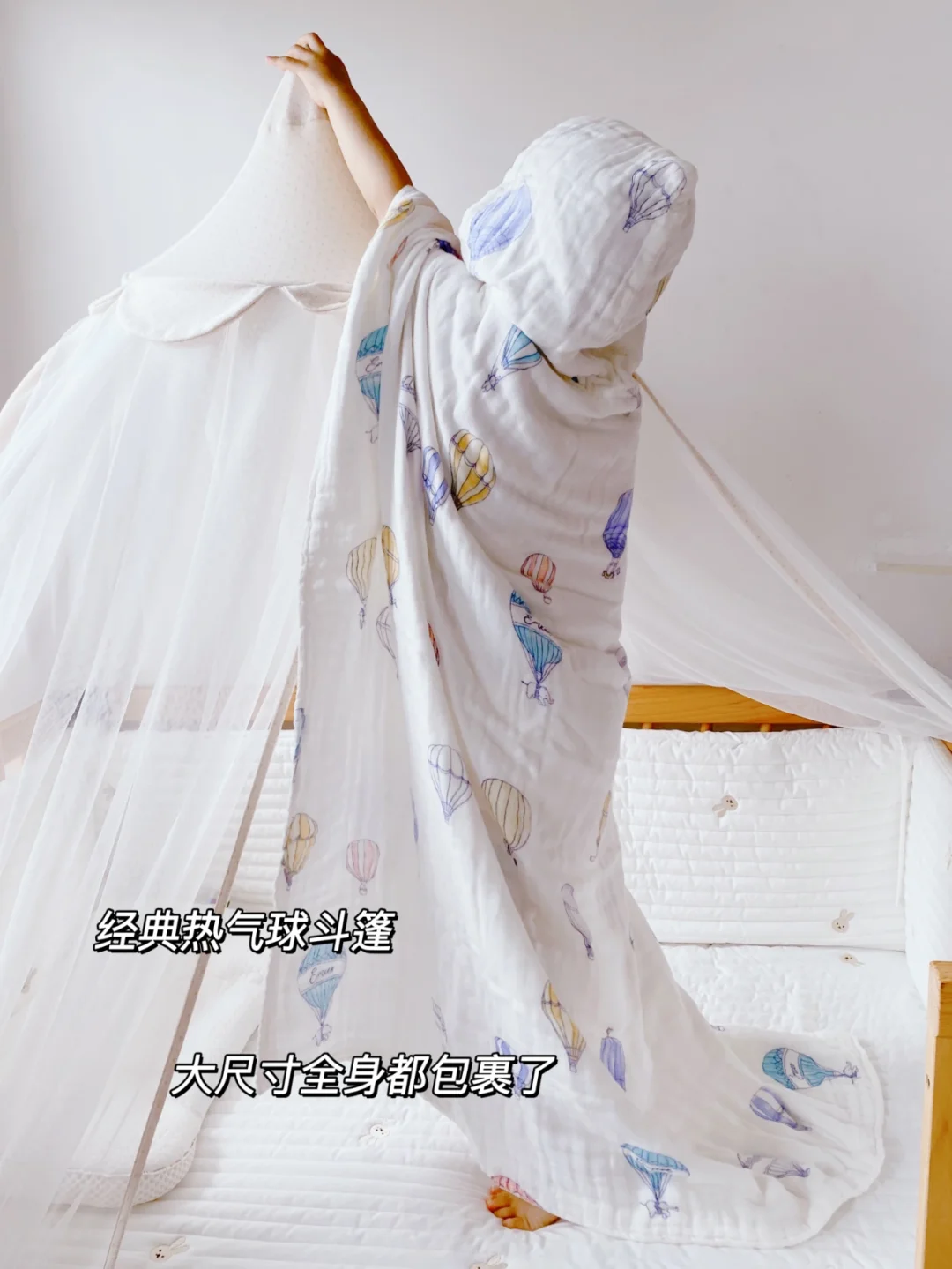 ➡️这款浴巾还是采用的新疆精梳长绒棉,纱罗手工编织工艺更紧密,用了这么久也不起球、不掉絮,反而洗越柔软。这还是个斗篷款的,每次洗完头带上帽子,擦拭一下很快就干了,不用担心宝宝头发湿漉漉的着凉了。