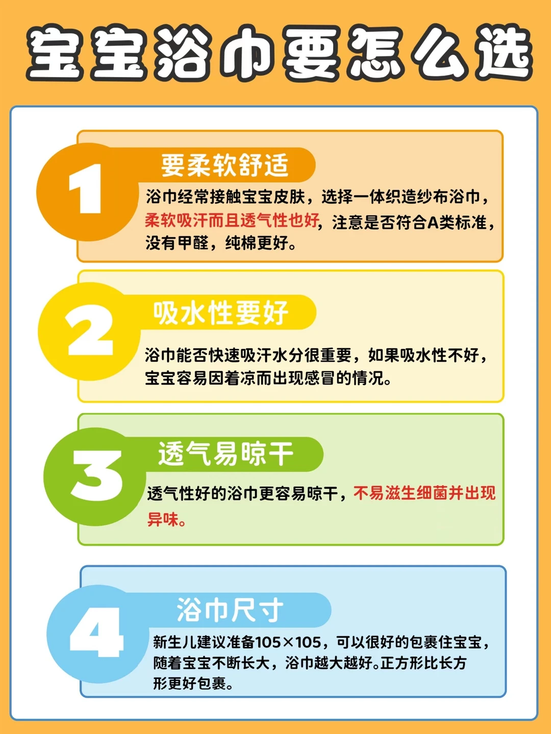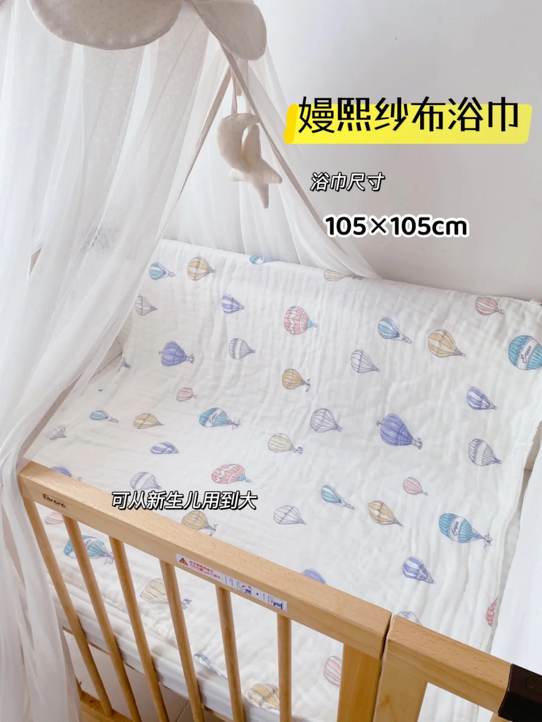 👉尺寸是105*105,大尺寸更实用,小月龄的宝宝还能做包被。平时除了在家用,外出游泳馆我也带着,午睡还能做盖毯床单,一巾多用的性价比很高。建议宝妈们多备着几条,也方便换洗