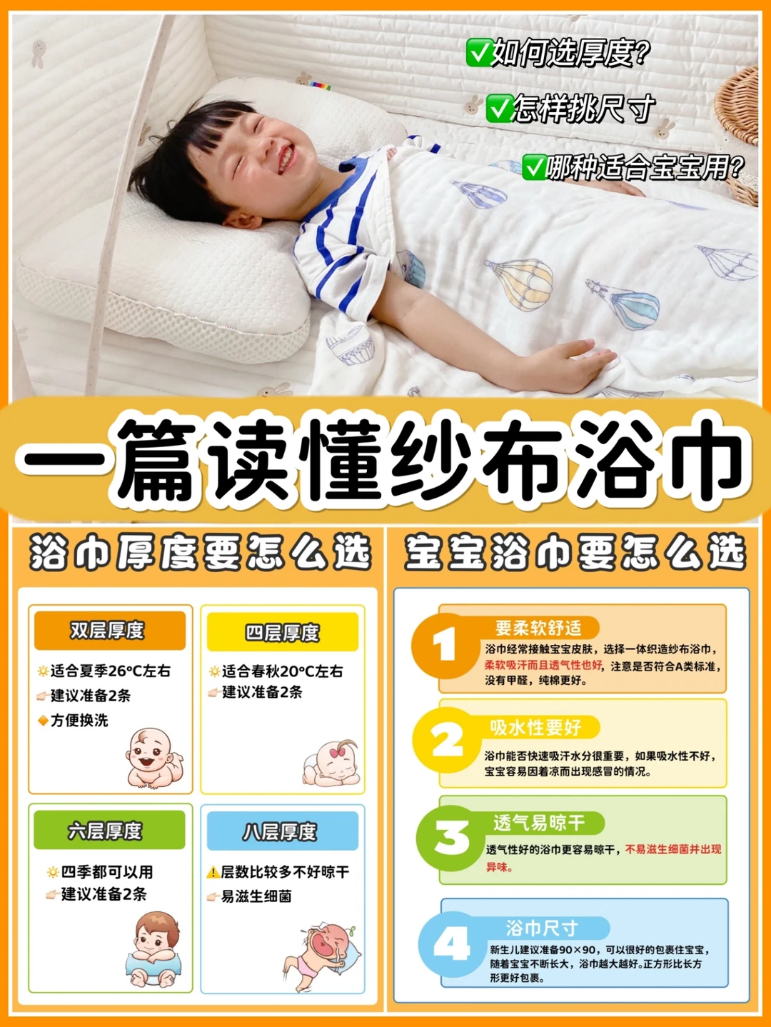 🔅纱布浴巾怎么选?