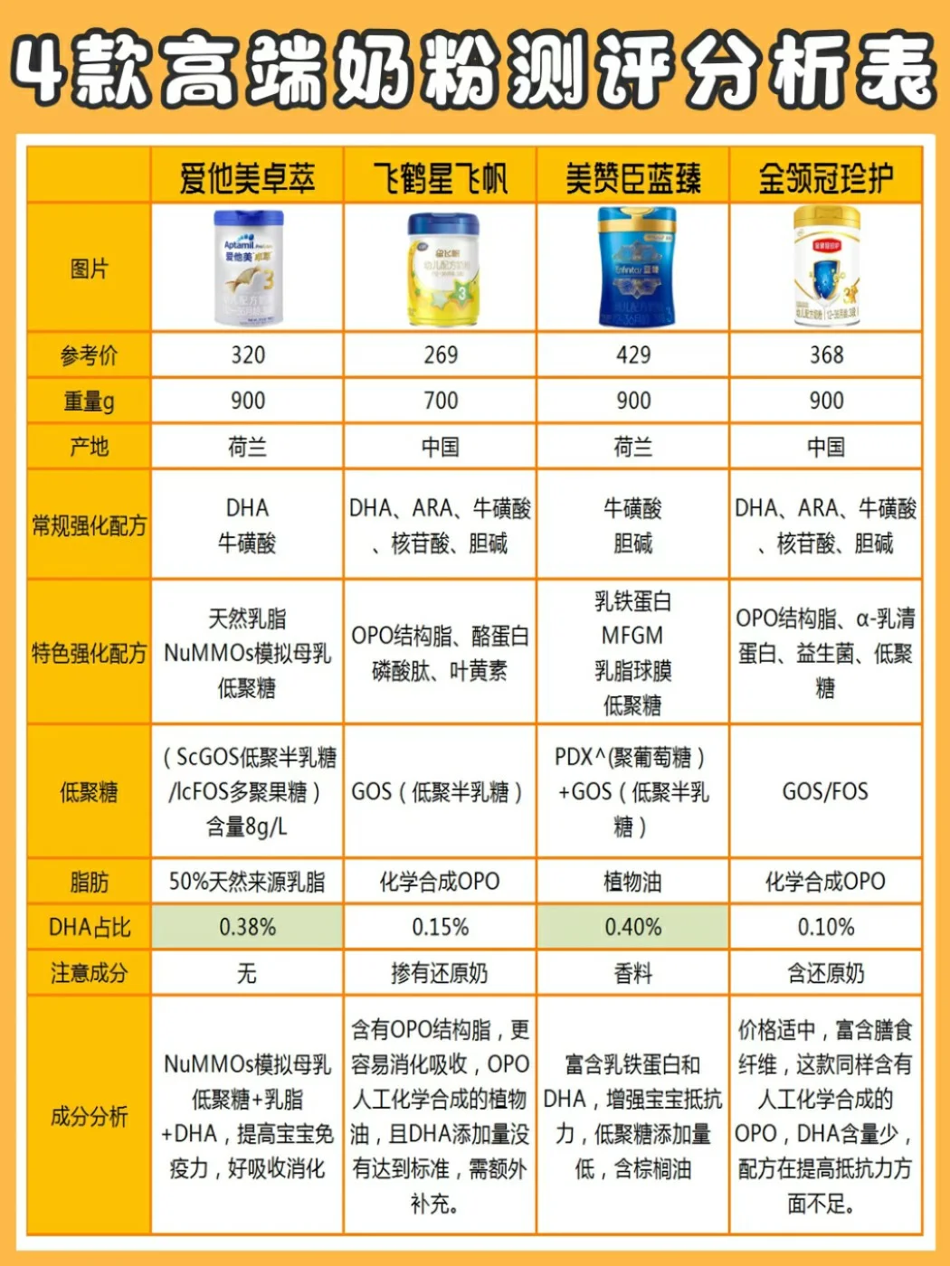 有OPO研发专利,宝宝更容易消化吸收,但是DHA含量比较低,宝宝需要额外补充DHA促进视力发育。