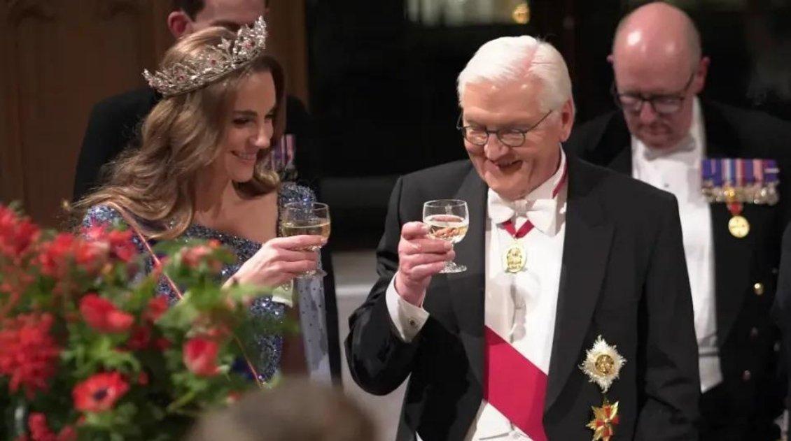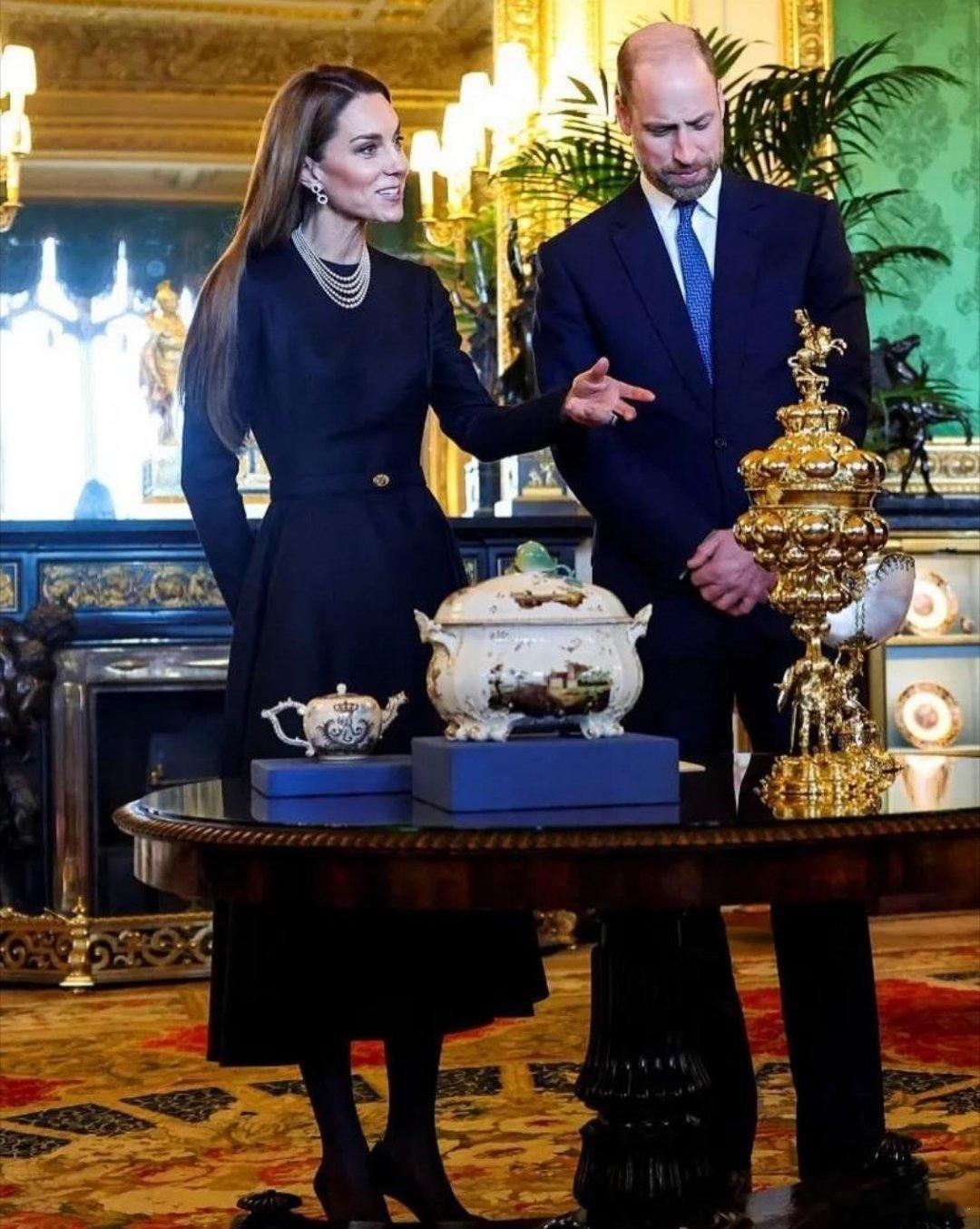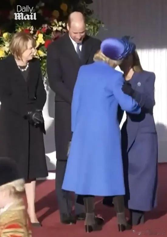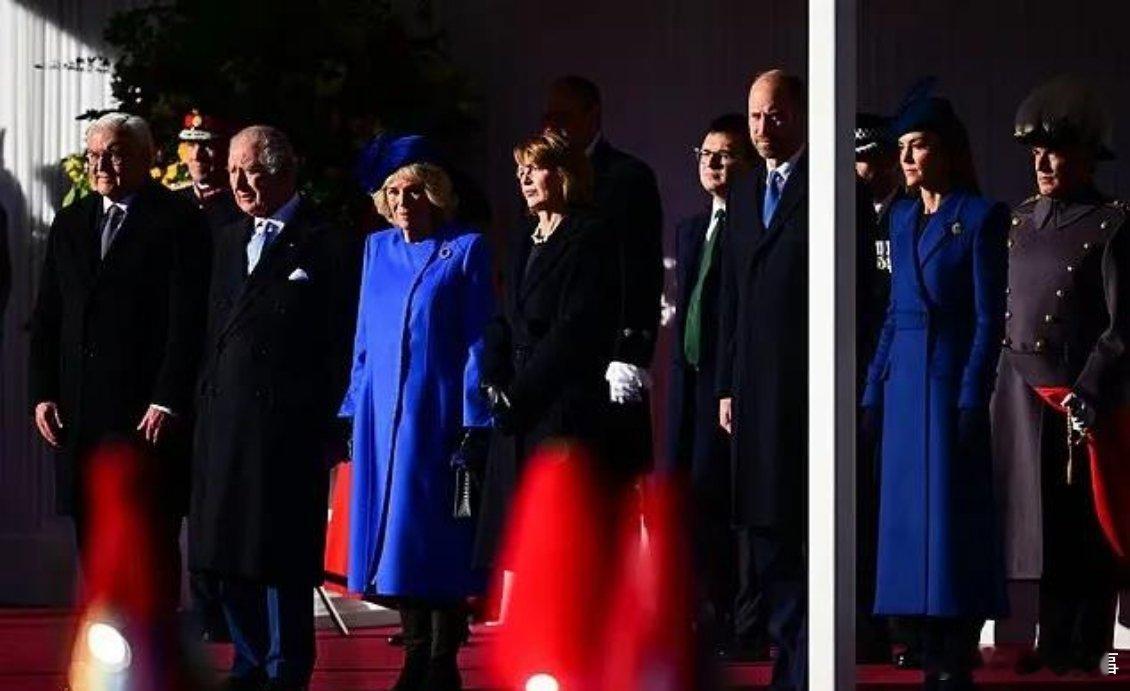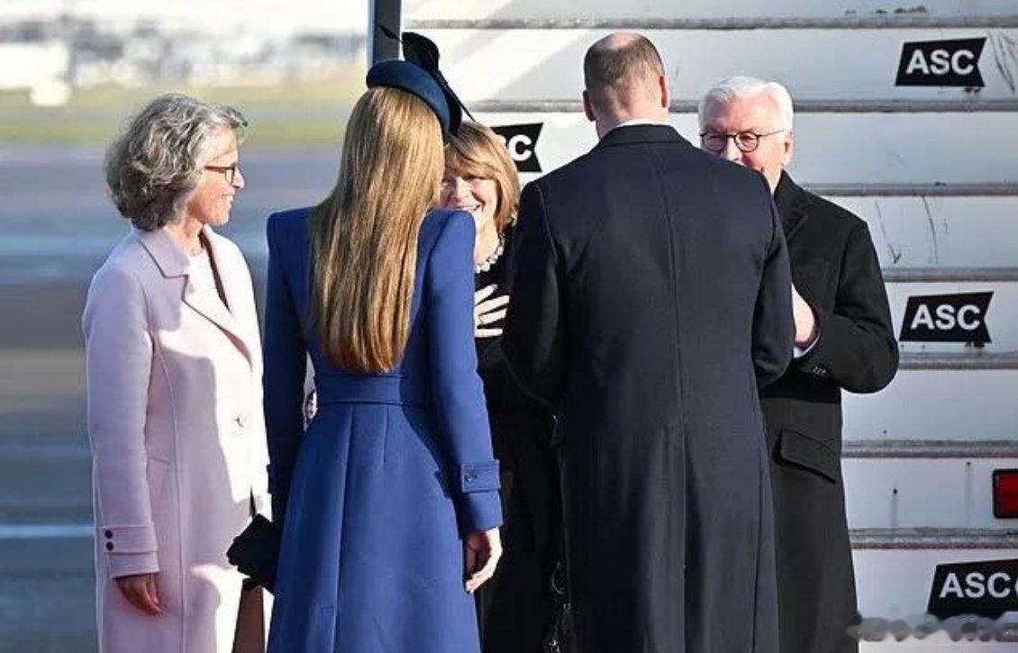 当地时间12月3日,威廉王子和凯特王妃代表查尔斯三世,前往希思罗机场,迎接到访的德国总统弗兰克-瓦尔特·施泰因迈尔及其夫人埃尔克·比登本德,随后一行人一起前往了温莎城堡。当天凯特主打了蓝色,这也是她偏爱的颜色,从帽子到大衣再到手套、靴子,都是蓝色系的。现年43岁的凯特每次出现,造型总会引发关注,这次也不例外。英国媒体发现,这位向来喜欢大波浪卷发的王妃,这一次颇为罕见地拉直了头发,金灿灿的及腰长发在阳光的照耀下很是夺目。很多王室粉丝的反应是,凯特是想要跟女儿夏洛特保持一致吗?现年10岁的夏洛特公主,几乎每次亮相时都会展示她那一头笔直的金发,倒也挺符合人们对“小公主”这个词的想象的。“凯特打造了和夏洛特同款的金发,我想她今天的样子就是夏洛特长大后的模样,”有人如此评论道。值得注意的是,凯特的头发向来以浓密著称,即便是抗癌后她的头发也未见稀少,这也引发了猜测。有人觉得她戴了假发,但也有人称并非所有化疗都会导致掉头发。不过有一点却也不同了,那就是发色。此前凯特的头发是棕色的,但这几个月来却变浅了很多,她自称是“阳光暴晒”的结果,但普遍认为就是染色了,因为一场大病可能导致她白了很多的头发,所以索性染成浅色了。不过当天凯特的“金长直”并没有坚持太久,等到晚间出席国宴时,她的头发又变回大卷了,以便和那顶“维多利亚女王的东方圆环冠冕”更加匹配,这也是她首次佩戴这顶镶嵌了2600颗钻石以及11颗印度红宝石的王冠,最初属于维多利亚女王。威廉凯特将德国总统夫妇带进了温莎城堡,查尔斯三世在那里举行了欢迎仪式。很容易发现,凯特当天和卡米拉撞色了,现年78岁的王后也穿了蓝色大衣,只不过是皇家蓝色的,比凯特的更鲜亮一些。在欢迎仪式结束前,卡米拉走到了凯特的面前和她互致问候,凯特在亲吻了卡米拉的脸庞后向其行了屈膝礼,却也顺势被卡米拉扶了起来,“婆媳”俩倒也相处融洽。王室评论员很少提及凯特和卡米拉的关系,但据称应该挺和谐的,毕竟她们之间不存在利益关系,平时见面的机会也不是很多。在进入温莎城堡欣赏王室的德国艺术品收藏的时候,凯特展示了她的内搭连衣裙。从图片还真是很难看出,其实那是一条深蓝色的威尔士亲王格面料的裙子,来自英国本土品牌巴宝莉,是一件全新的衣服,而且似乎是为凯特定做的,因为原版的是没有袖子的。