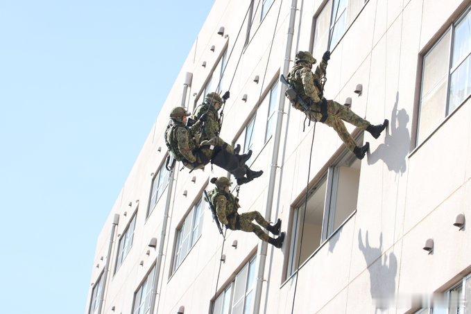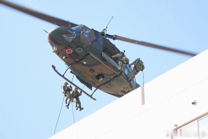 鬼子自卫队第34普通科连队突入分队搭乘UH-1直升机索降至建筑物屋顶,随后清剿屋内;情报小队则驾驶侦察摩托车展开侦察,全程公开亮相。板妻驻地第3陆曹教育队海外新鲜事热点观点