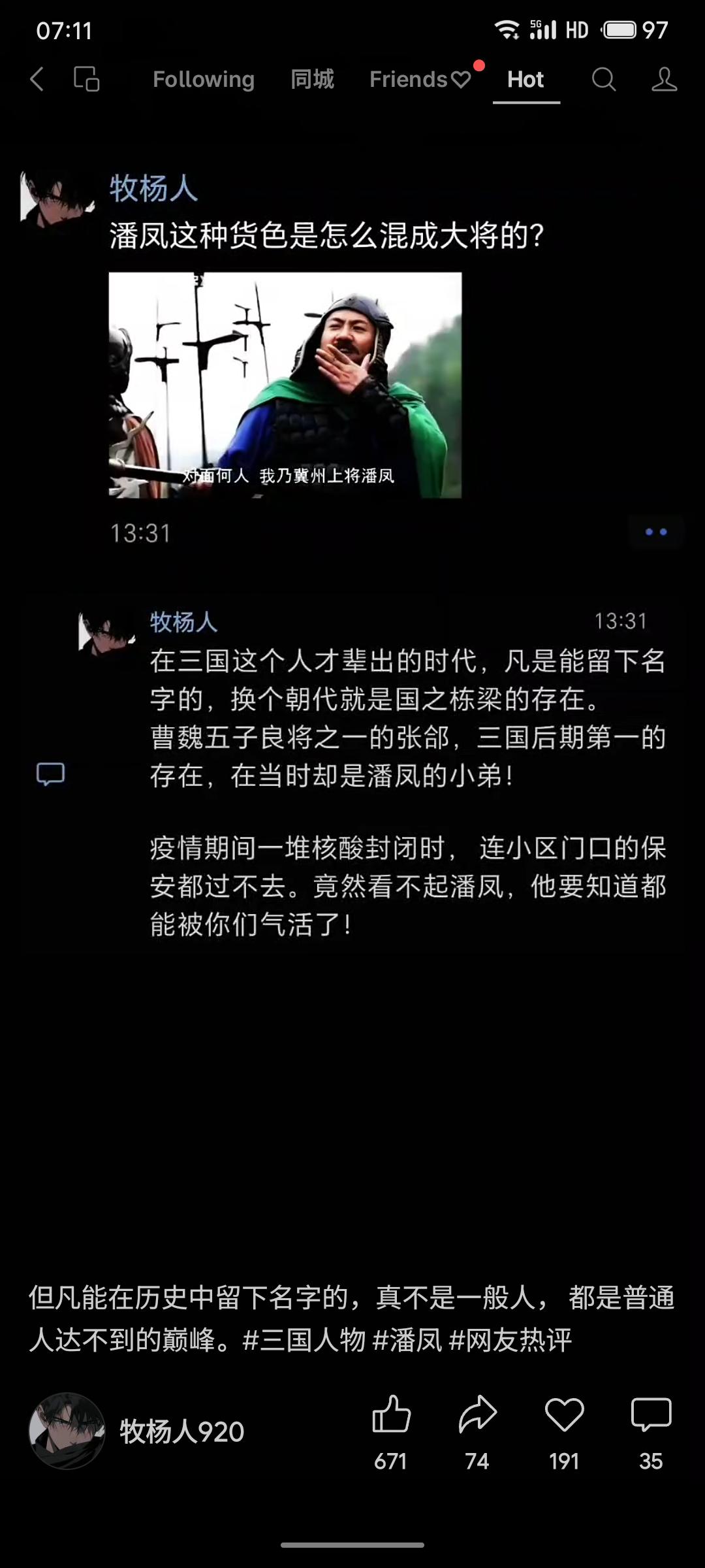 以三国人物潘凤为例,称其被演义弱化却仍是历史留名之将,强调乱世中能载入史册者皆非凡人,并借张郃、保安等比喻调侃今人不应轻视古人。