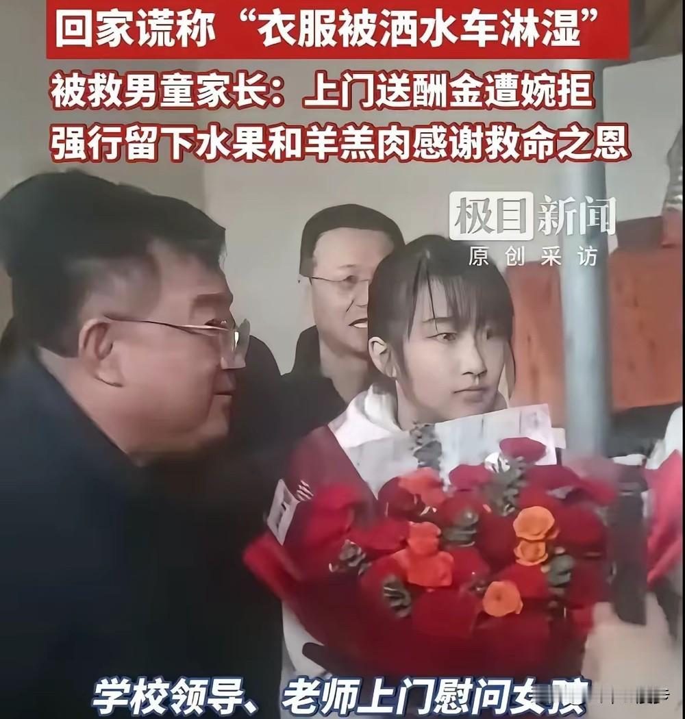 宁夏13岁女孩不顾自身安危爬冰救下4岁男童,事后怕父母担心谎称衣服被洒水车淋湿,连名字都不愿留下。被救男童家长登门送酬金遭婉拒,只能留下水果和羊羔肉聊表谢意,学校领导和老师也专程上门慰问这位善良勇敢的小英雄。这份年少的果敢与纯粹,让人心生敬佩。 看到这个新闻真的被狠狠打动了,13岁的女孩本是需要被呵护的年纪,却能在危急时刻挺身而出,爬冰救下4岁男童。更难得的是,她怕父母担心谎称衣服被洒水车淋湿,连名字都不愿留,面对酬金也果断婉拒,只收下了充满心意的水果和羊羔肉。这份刻在骨子里的善良与勇敢,这份年少的纯粹与担当,不仅让被救家庭倍感温暖,也让我们看到了少年身上最珍贵的品质。为这个宁夏女孩点赞,她值得所有的赞美与敬意! 宁夏13岁女孩 11岁小孩救人 女孩勇救男子 14岁男孩救人 萌娃救人事迹 女孩勇救男子 14岁男孩救人 16岁救人男孩 十九岁男孩救人