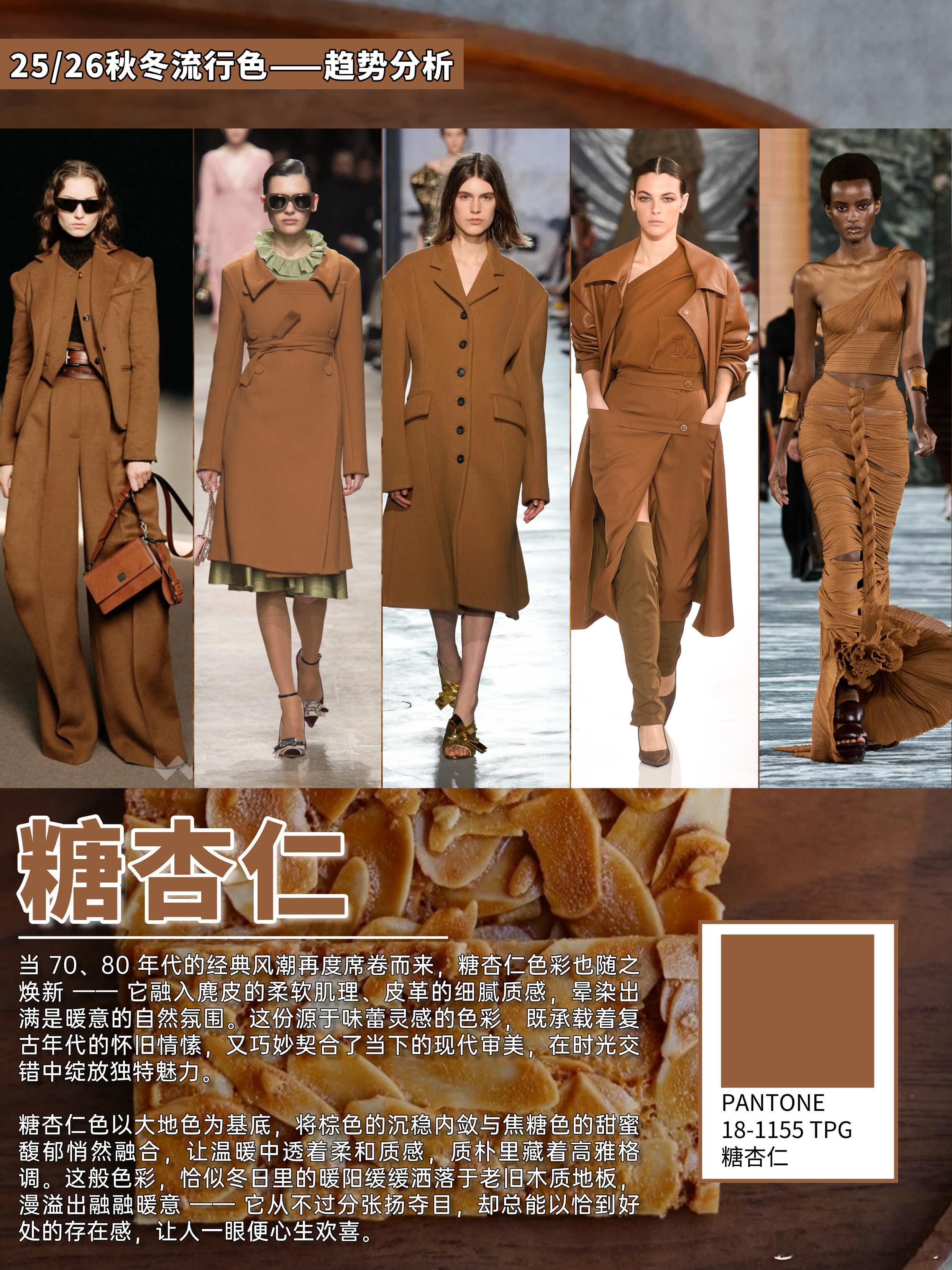 2026年度代表色风格大赏秋冬六大流行色,解锁冷暖交织的质感美学!2026秋冬时尚色彩图鉴新鲜出炉,六大绝美色调勾勒季节质感,暖调治愈治愈人心,冷调自带高级气场,每一抹色彩都藏着专属风格密码,适配多元穿搭与审美表达。糖杏仁色:大地基底揉合棕调沉稳与焦糖甜润,暖柔质感裹着高雅格调,上身自带温柔滤镜,黄皮适配不挑场景,是秋冬穿搭的质感底气。草纸色:浸润自然诗意的低饱和色调,兼容面料肌理与极简风格,利落线条中透着松弛感,轻松拿捏低调不张扬的日常高级感。法国烤肉色:暖棕系经典标杆,复刻炙烤食材的诱人光泽,醇厚色调自带暖意,上身显白提气,兼具复古韵味与实穿性。浅琥珀褐:凝练千年琥珀的温润质感,晨曦光晕晕染下的柔和褐调,自带朦胧氛围感,低调光泽感拉满精致度。冰灰色:冷灰基底暗藏细碎蓝调,打破纯灰的凛冽感,清冷中透着细腻层次,极简穿搭里自带高级叙事感,适配通勤与休闲场景。王冠蓝:潘通认证四季经典色调,深邃如夜空的幽蓝裹着艺术质感,静谧魅惑中藏着力量感,冷暖搭配皆能解锁高阶风格。冷暖碰撞间定格秋冬美学,六大流行色承包全年穿搭灵感,轻松穿出专属质感格调~