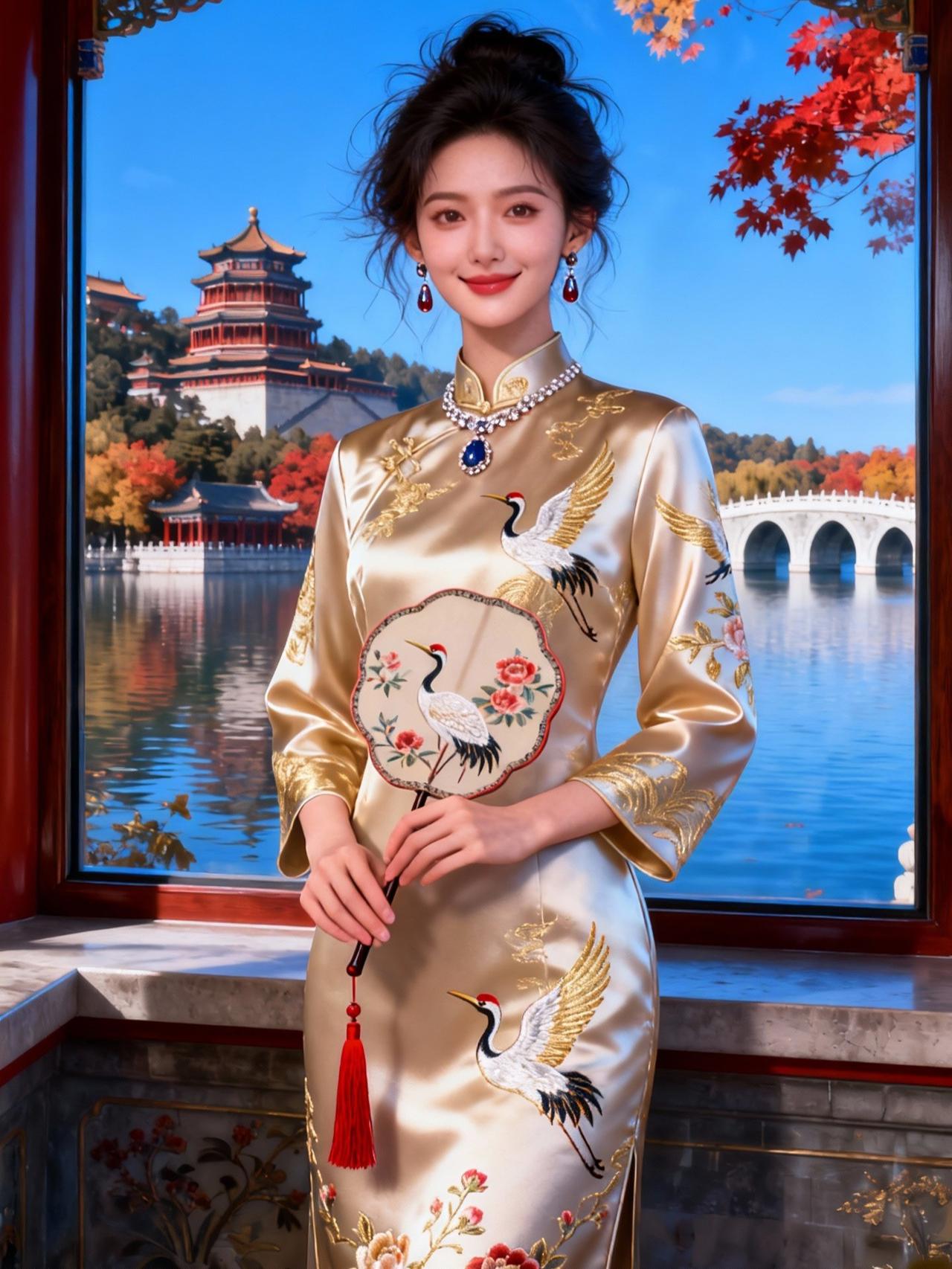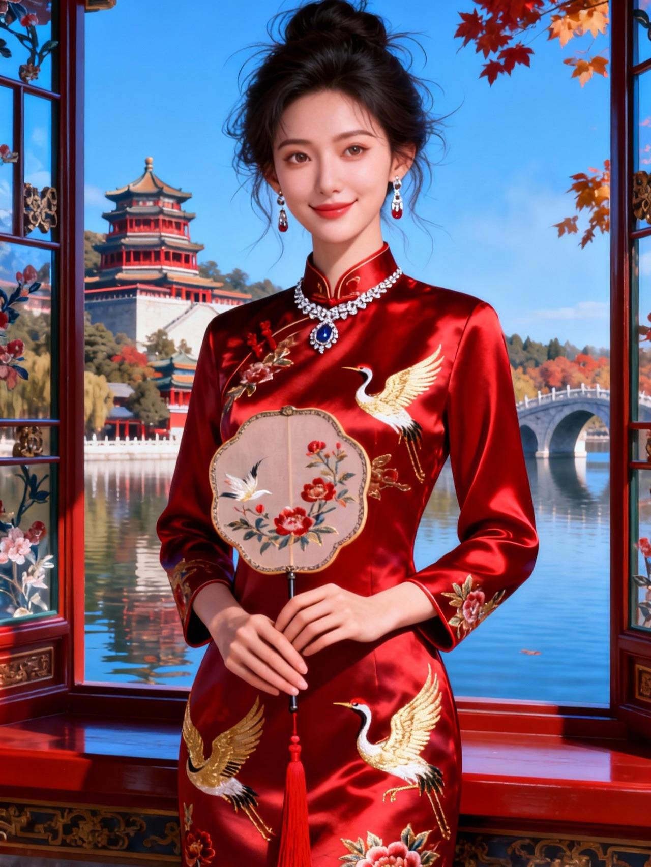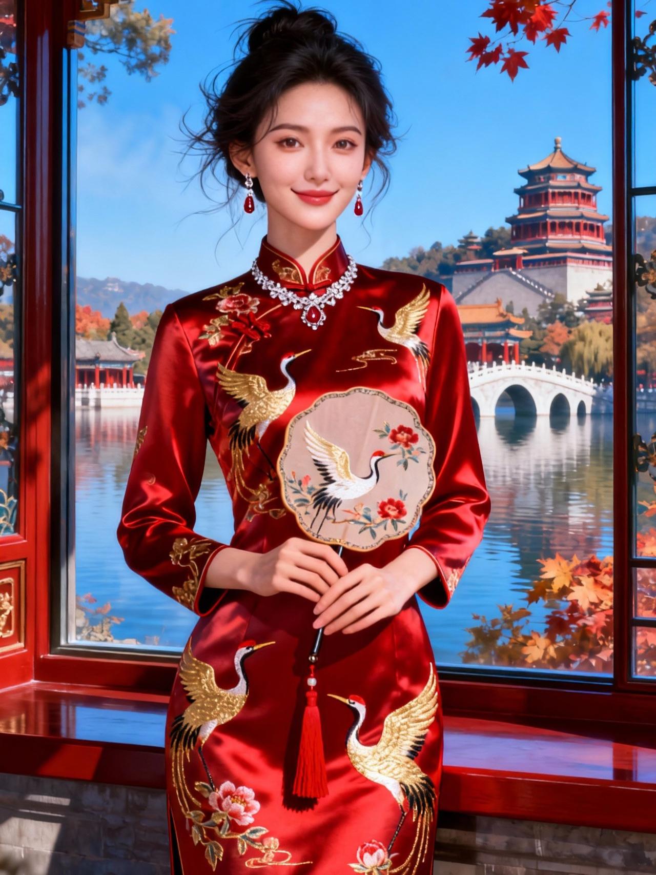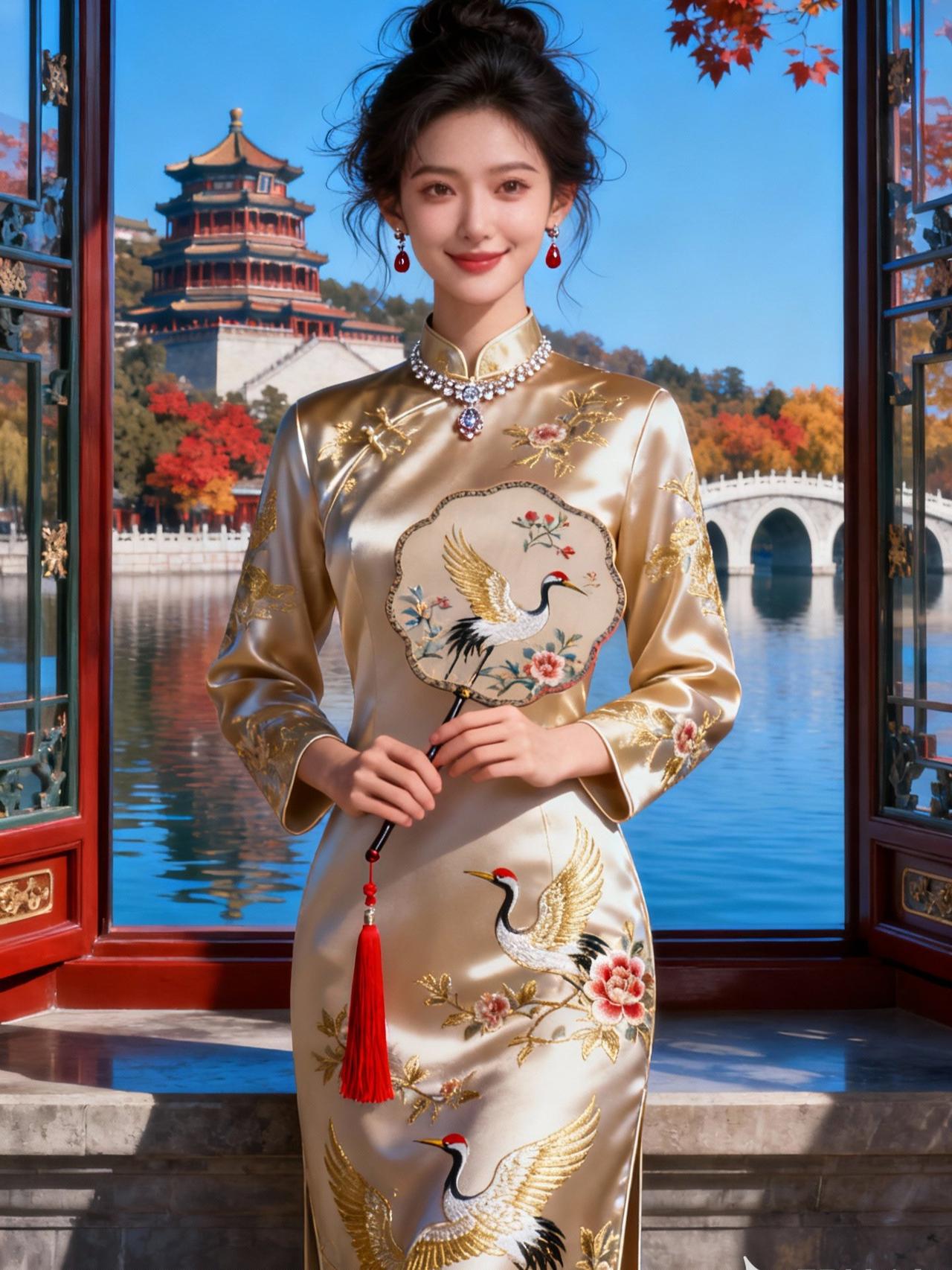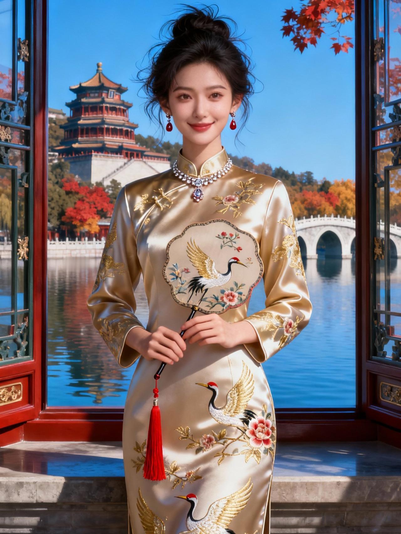 《立领承古韵,裙摆曳今潮》 一寸立领叩千年,盘扣萦香绾华年。 斜襟裁得宋时月,窄袖拢来明清烟。 锦缎暗绣梅兰骨,苏绣轻描云水肩。 罗裙曳地生风软,不惹尘嚣自翩跹。 青砖巷陌留倩影,霓虹灯下展新颜。 传统为经织雅韵,时尚作纬绣芳妍。 一针一线藏文脉,一颦一笑醉人间。 古韵今潮皆入画,旗袍不语自嫣然。 气质盘扣 温柔盘扣 旗袍立领裙 中国风女装盘扣 刺绣中国风盘扣 盘扣雅韵 国风盘扣刺绣