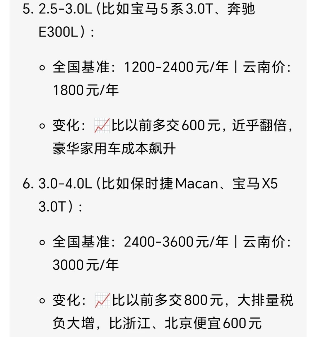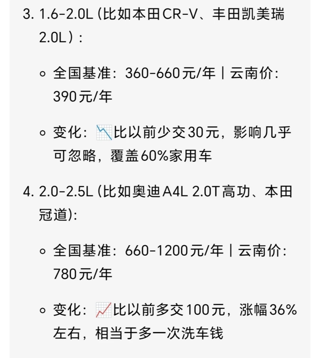 26年每年跟保险一起交的车船税要调整价格了,2.0以下基本都是小幅下降,2.0以上上涨,电动车车重超过2.5吨的也要交税。