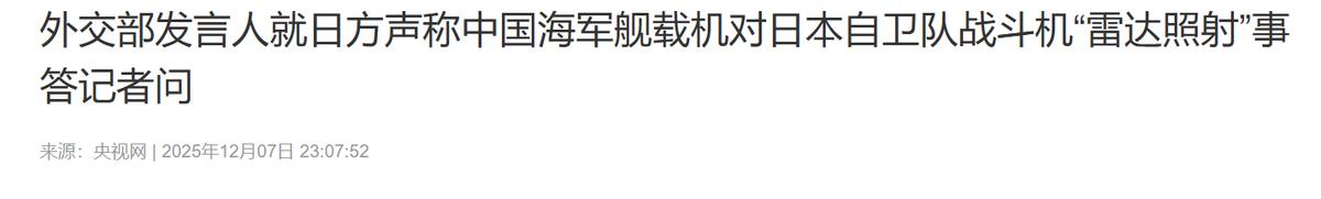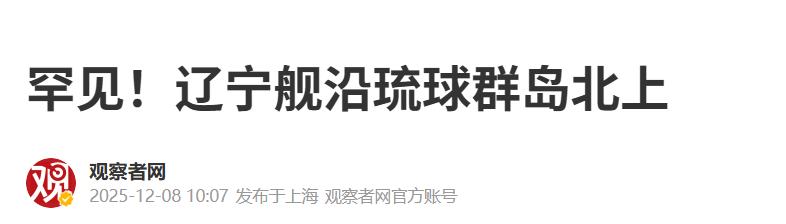 日方傻眼了!2025年12月7日,日方哭诉向中国发出抗议后,辽宁舰突然掉头北上,直冲日本本岛而去? 日本现任首相发表了错误的晒台言论,促使中日两国关系恶化。而在这个背景下,日本渔船再度入侵了我国钓鱼岛海域,从而遭到了我国海军的合法驱离。 在此事发生后,日方就在国际社会中,扮演受害者的角色,向其他国家哭诉我国的行为,但并没有起到明显的效果。 所以在时隔数日之后,日方再度重演类似场景。2025年12月7日凌晨的时候,日本防卫大臣突然召开了紧急的记者会议。 此人指控我国辽宁舰搭载的战斗机,对日本的战斗机进行了持续间断的雷达照射。此事立即引起国际的高度关注,随着事件进一步发生,我国外交部对此做出了明确的回应。 我国外交部的回应,就同日方的哭诉呈现了严重的相反。对于我国外交部表示,情的真相是日本战斗机对我国正常军事活动,频繁抵近进行侦察干扰,所以我国才进行了相关的反击。 在我国做出回应后,日方沉默了。日本的沉默进一步证明了他们的心虚,而与此同时,另一个让他们意想不到的情况发生了。 日本哭诉向我国发出抗议后,2025年12月7日的时候,根据最新消息显示,辽宁舰航母战斗群沿琉球群岛以东海域北上,直抵喜界岛以东约190公里处。 此事立即成为国际关注焦点,要知道除了辽宁舰之外,此次军事活动还有南昌舰、西宁舰、开封舰。所以日方高度关注此次航母战斗群的走向,随着直冲日本本岛而行,日本方面彻底傻眼了。 对此,您怎么看? (信息来源:外交部发言人就日方声称中国海军舰载机对日本自卫队战斗机“雷达照射”事答记者问-央视网) (信息来源:罕见!辽宁舰沿琉球群岛北上-观察者网)