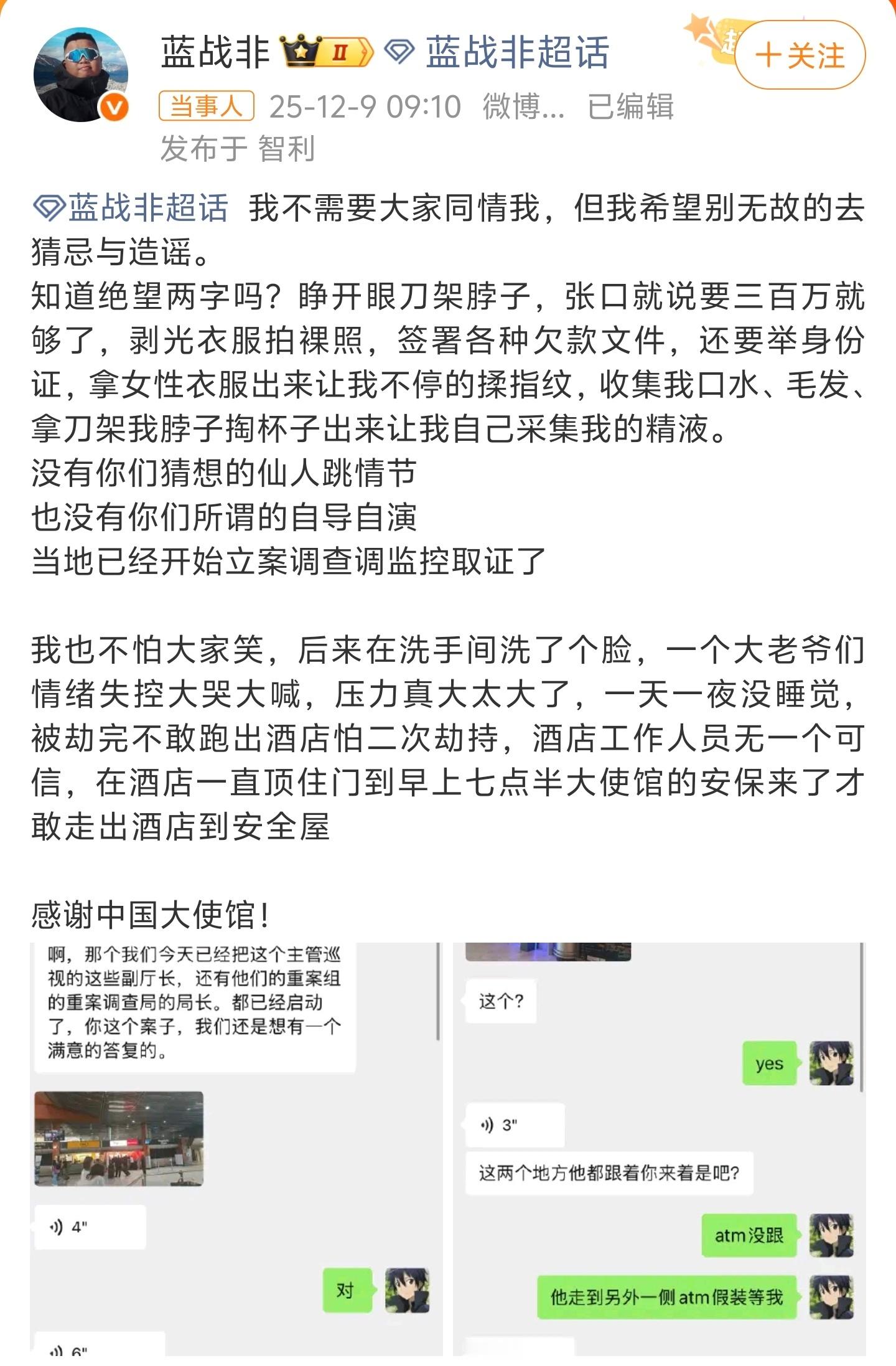 蓝战非称被绑架 换谁遭遇这种事,都得留下一辈子的心理阴影,万幸的是最终保住了性命。我们在国内待久了,习惯了这份安稳,很容易误以为国外也和国内一样安全,可现实是,不少国家和地区的抢劫、绑架、敲诈勒索案件频发,风险远超想象。尤其是蓝战非这样有一定知名度和财富的人,更成了不法分子眼中的目标。在外旅游或生活,确实得多留个心眼。不是说海外的同胞都不可信,而是面对主动凑上来的老乡或陌生人,无论国籍,都别轻易放下戒备。毕竟,在陌生的环境里,最该依靠的,永远是自己的警惕心。