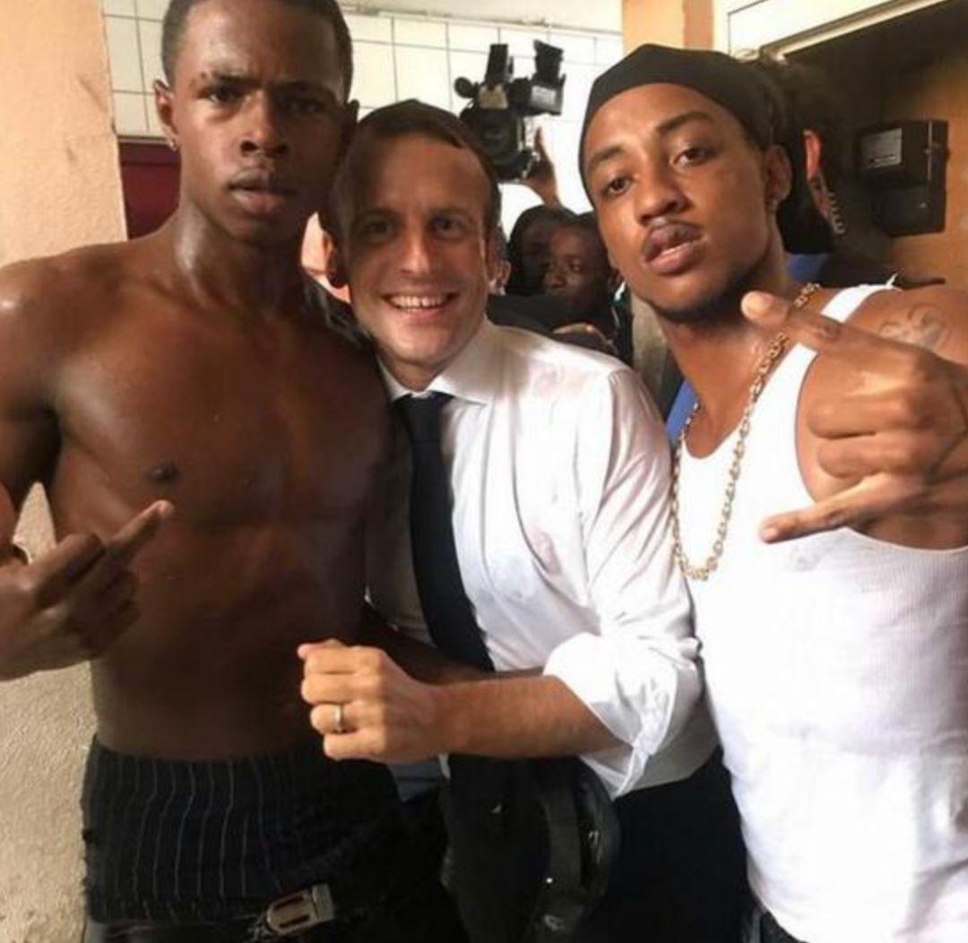 马克龙在黑人身旁好娇小,皮肤白皙的他显得挺小鸟依人的。