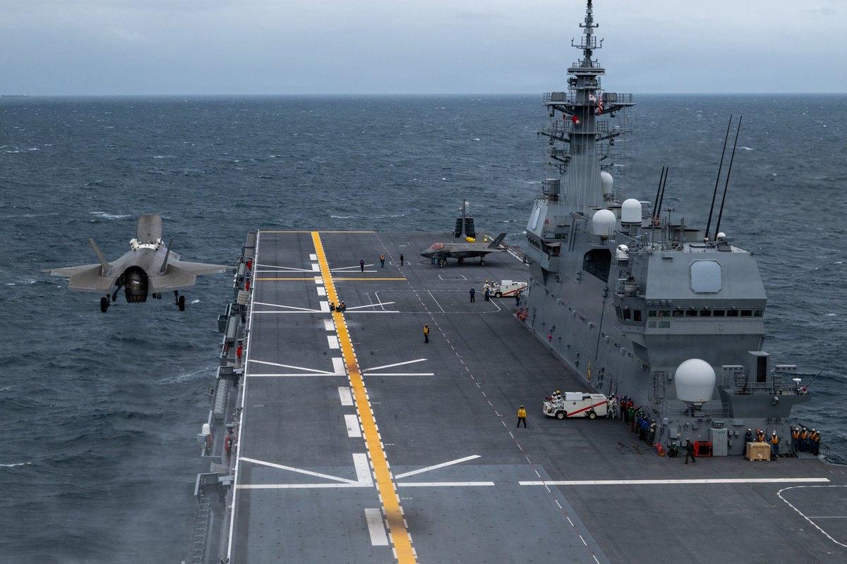 曾经不可一世、日本梦寐以求的F35,如今已翻不起一点涟漪,不过尔尔。美军F35B肥电II在日本加贺号轻型航母上与242海军陆战队战斗机攻击中队人员一起训练。