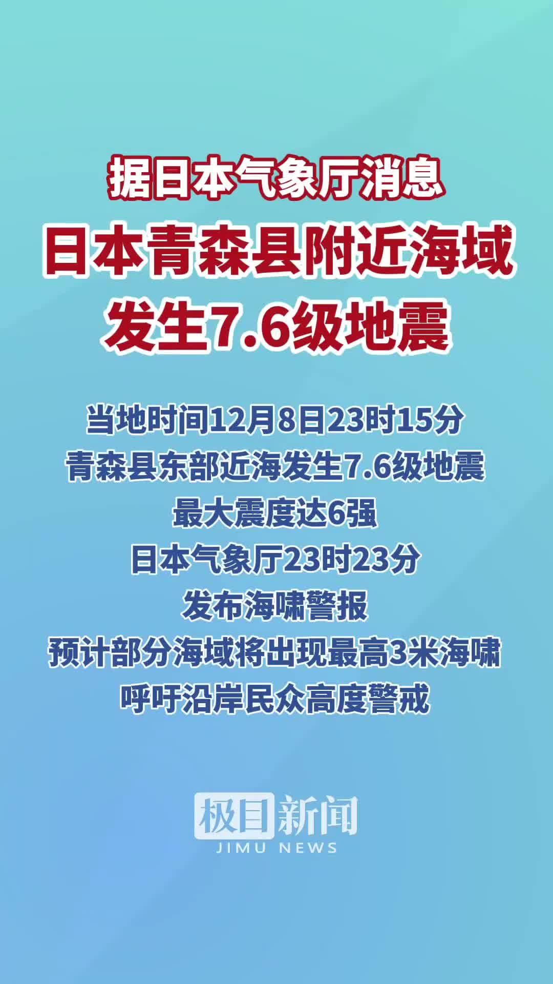 刚刷到一则新闻热点,昨天(12月8日),日本青森县近海突发地震。有在青森县的中国游客称:“整栋楼都在晃,我连滚带爬地跑去卫生间躲着。” 中国幅员辽阔,可供旅游的地方众多,况且近期高市早苗事件闹得沸沸扬扬,为何非要去日本旅游呢?难道是日本的空气好,还是核海鲜更有吸引力?真不理解那些人,纯粹是崇洋媚外。