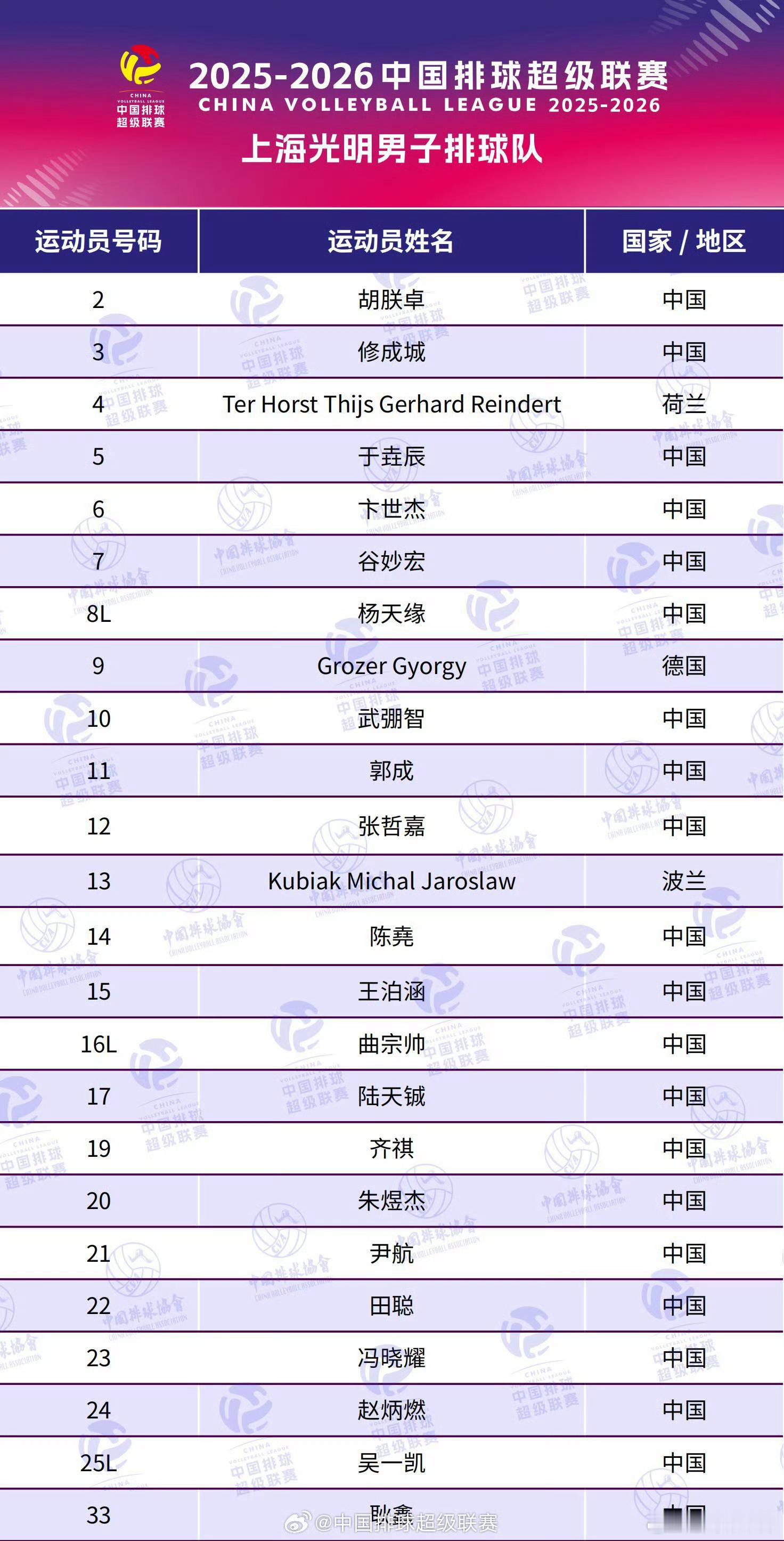 中国男排 新赛季内援变动情况~上海:胡郑卓(北京)、于垚辰(江苏)、耿鑫(山东)天津:陈嘉杰(广东)辽宁:李洋(山东)、郭顺祥(四川)广东:付侯文(上海)*浙江北京山东基本还是本土球员(尤其是浙江和山东,备受关注的新队员都上一队了)
