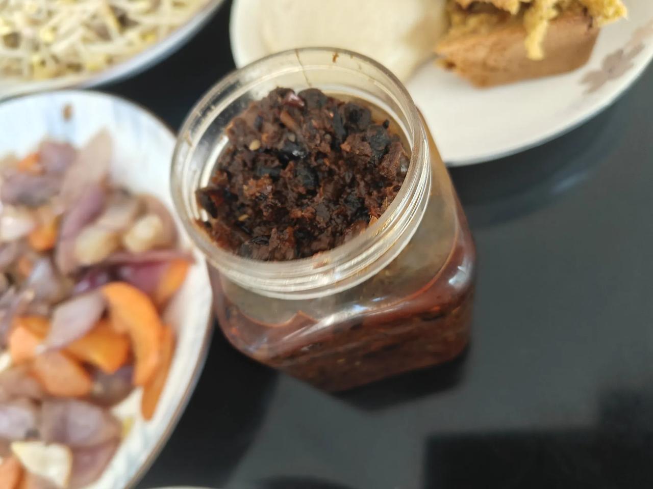 这是本人今天早上,也可以说是早上跟中午合二为一的饭,老战友们都知道我属于低收入阶层,每天吃饭都得精打细算。 反正也是年龄大了,吃不动了,一天也就两顿饭。早上尽量吃的好点,晚上对付一口。 你像今天这顿饭,豆芽1.3元买的,圆葱1.2块钱,土猪肉1.5两,2块钱,两个土鸡蛋两块钱的。 馒头面是今年春节期间剩的,就不计入成本了。 这顿饭坏银子,12块钱。 那个玻璃瓶的是湖南湘酱,里面有汨罗江 “肉嫩子”的野生小鱼。这种鱼仅一两寸长,肉多刺少,肠肚不苦,是制作酱鱼仔的优质原料,制成的酱料小鱼风味十足。 这酱,是邻居湖南老何媳妇给我特制送过来的。 老何媳妇是湘女。 我这么跟你说吧,湘女性格刚烈,敢爱敢恨。不亚于重庆“辣妹子”。直爽泼辣、不绕弯子,做事果断有韧劲,情感上爱得炽热、分得干脆。 重情重义,哇塞热心肠。对家人、朋友极度真诚,讲义气、懂感恩,邻里间互帮互助。 邻居湖南老何两口子做点好吃的,就喊,大哥大嫂!端盘子就来了。 人家好,你得过硬! 这辈子是不行了,来生娶个湘女做老婆。重庆辣妹子也中。 我这些天心脏病犯了,前几天把孩子答谢宴礼账转给战友老猫了,我说,哥,兄弟一旦不行了,把礼账上打挑的钱,替弟弟还给人家。 他说,克非,用不用现在给。我说,不用。 一辈子不占人便宜,一辈子没借过一分钱。 我说,哥,别给错了,打桃的! 也希望答谢宴随礼的,亲朋好友,编个理由也行。 我感觉,我们老人,早餐适合自己就好。也用不着那么讲究,费事儿。