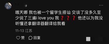 一个女大学生被一个留学生搭讪,在泡妞这块他们的锲而不舍,有缝就钻的精神值得国内男生学习。上来就用英语把女孩夸一通,把你搞晕,之后就是各种求助,博取同情,什么中文不行,害怕考试之类的,用各种办法接近你,要是搭他们的茬,那就上钩了。还好这个女孩比较理性,说学习要收费,咨询要给钱,给挡回去。搭讪女生技巧