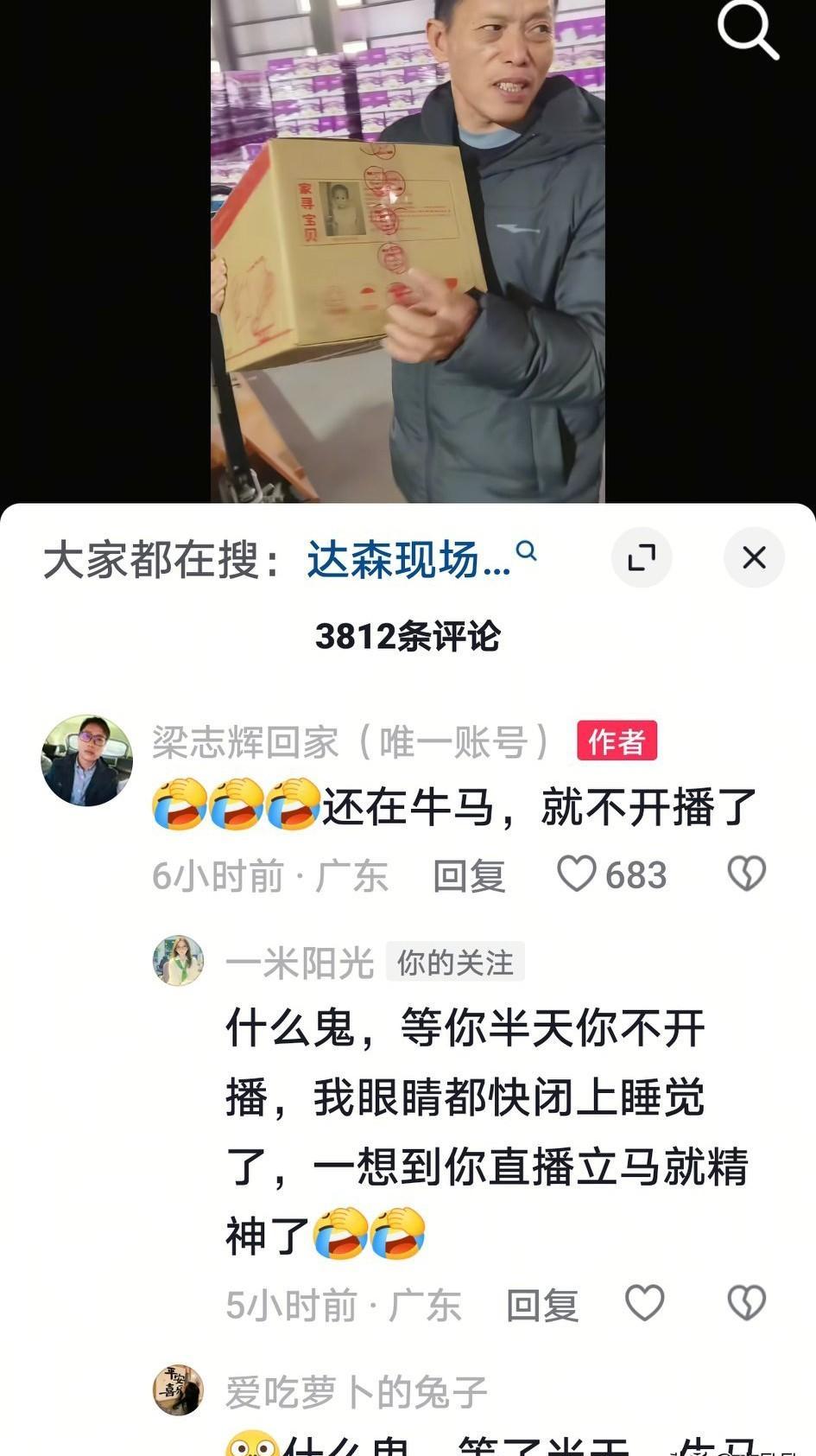 梁爸举着纸箱的手,微微颤抖。 纸箱上,两个孩子的照片,一张是希望的符号,一张是未尽的等待。 "党博,一定要接住这运气啊。 " 一句朴素的祝福,背后是无数个不眠的夜晚。 多少人为了生计直播带货,而真正的梁志辉,却在"牛马"中寻找别人的孩子。 那些失踪儿童的父母,心被挖走了一块,却还要坚强地活下去。 梁爸的纸箱,不是普通的纸箱,是希望的方舟,是爱的接力棒。 在这个浮躁的时代,还有人愿意为别人的孩子,放下自己的利益。 这世上,最伟大的直播,不是镜头前的表演,而是用生命照亮他人回家的路。