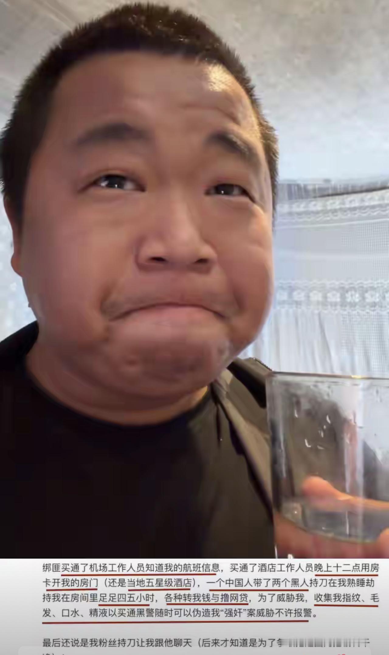 千万网红蓝战非南非被绑架! 刀架脖子逼要300万,还被采集体液伪造强奸案,这操作简直细思极恐! 谁能想到,这场惊魂5小时的绑架,竟是同胞提前半年布的局。买通机场和酒店人员、摸清行程尾随,精准拿捏博主的公开动态下手,比陌生人作案更让人脊背发凉。 大使馆早反复提醒南非治安差、华人易成目标,可总有人觉得“危险离自己很远”。其实海外出行,高调露富和公开行程就是给不法分子递“邀请函”,安全从不是运气,而是时刻绷紧的弦。 真正的自由行不该是裸奔式冒险,而是把安全放在首位的谨慎。