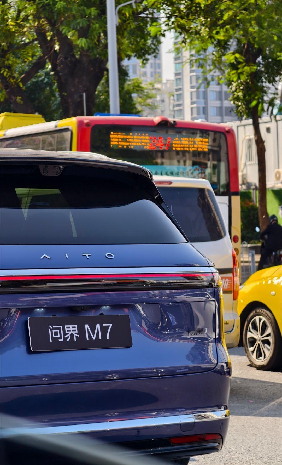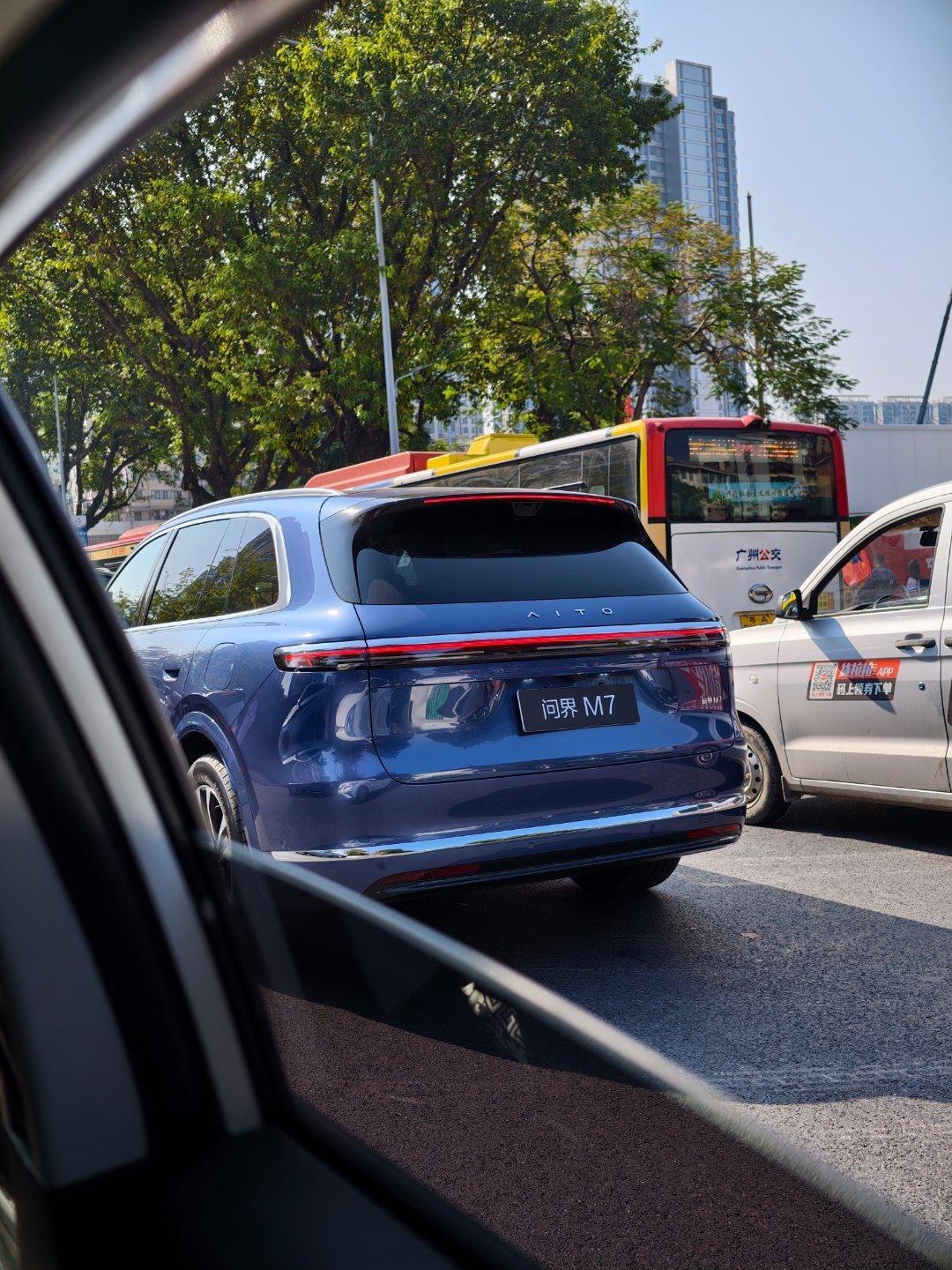 打车路上偶遇一台新问界M7还是一台气质蓝我觉着问界找到了造豪华车的窍门厚重和简洁,是一台豪华车该有的腔调少,即是多新能源汽车问界新m7