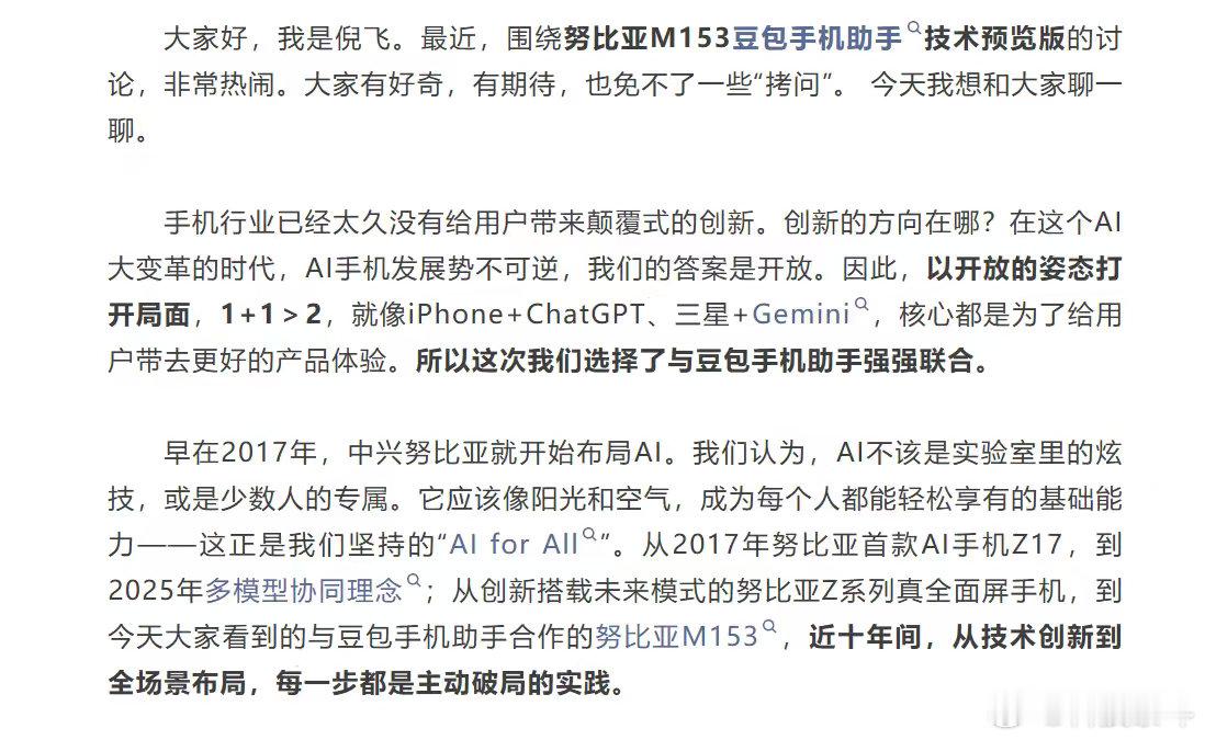 “努比豆”组合带来的豆包手机,确实让普通用户感受到了AI的便利。它能用语音指令完成点外卖、订机票甚至批量投简历等跨应用操作,十分钟投递30份简历的高效让人印象深刻。这种系统级的AI助手,正尝试把手机从工具变成能主动协作的伙伴。虽然部分主流App的兼容性问题依然存在,但“努比豆”这种注重实用场景的探索,确实为沉闷的手机市场带来了新意。当AI真正开始理解我们的日常需求,生活的效率或许真能被重塑。