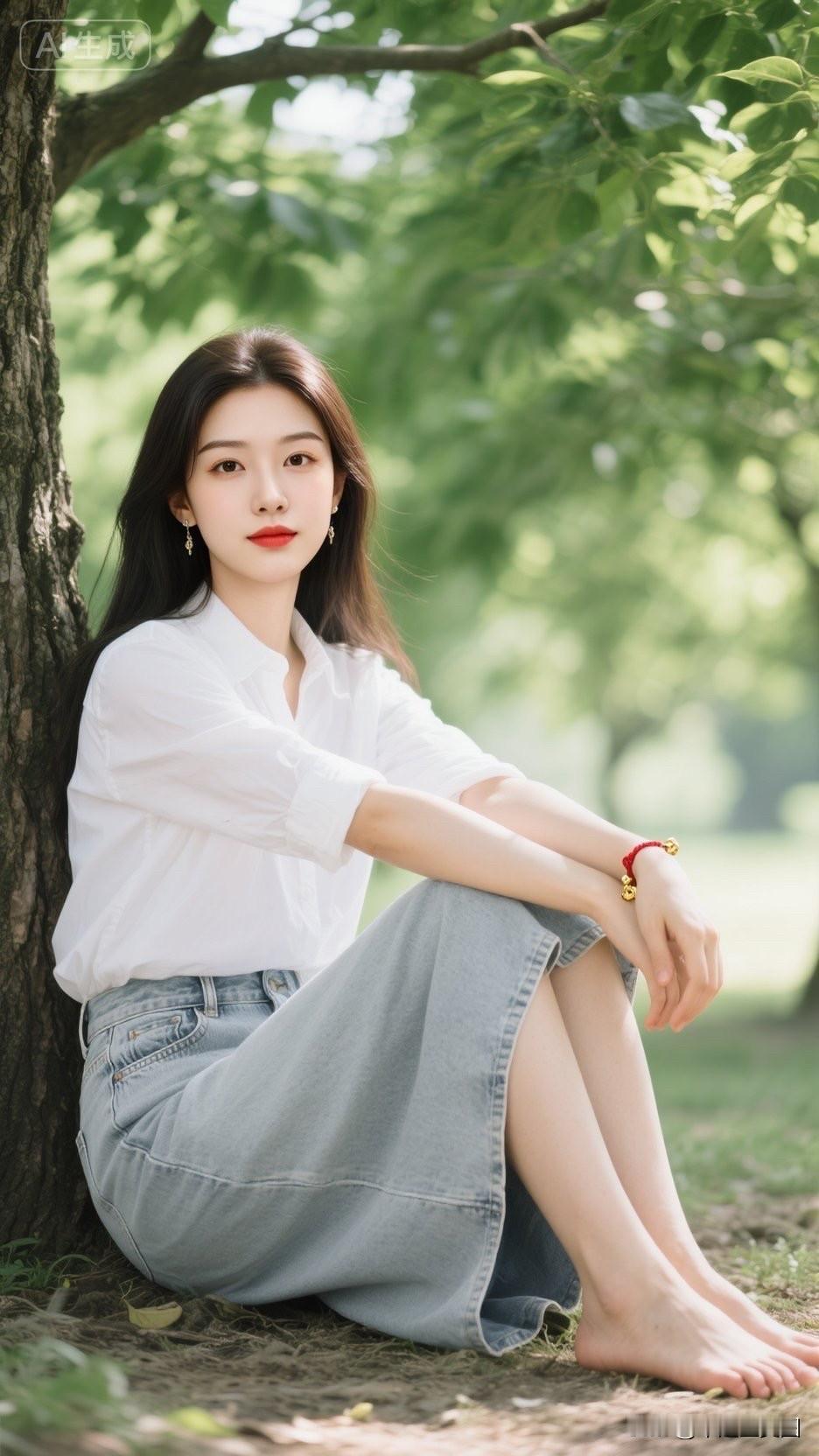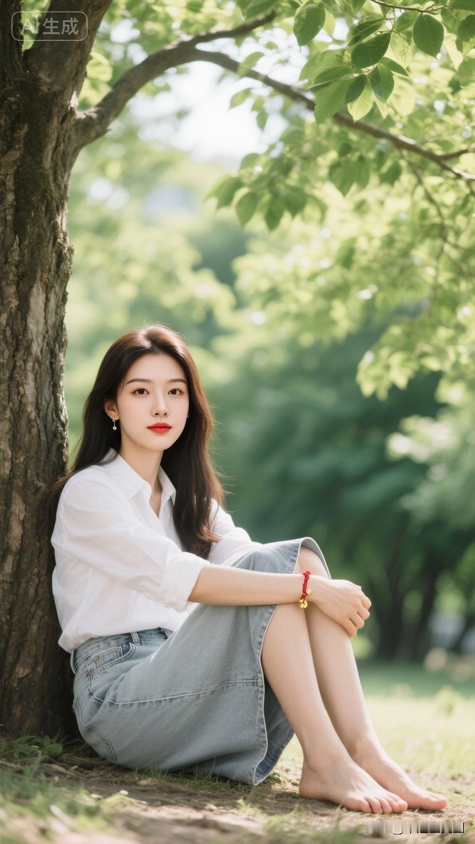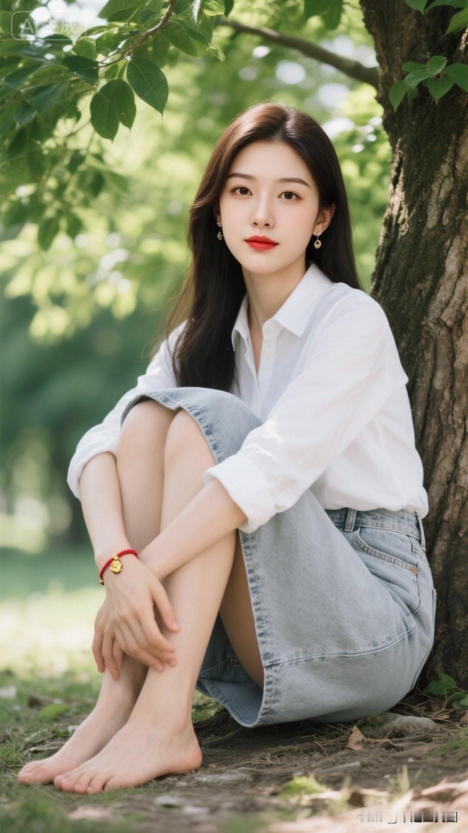 阳光下的清新少女,白色衬衫与牛仔裙的完美搭配,自然又优雅。