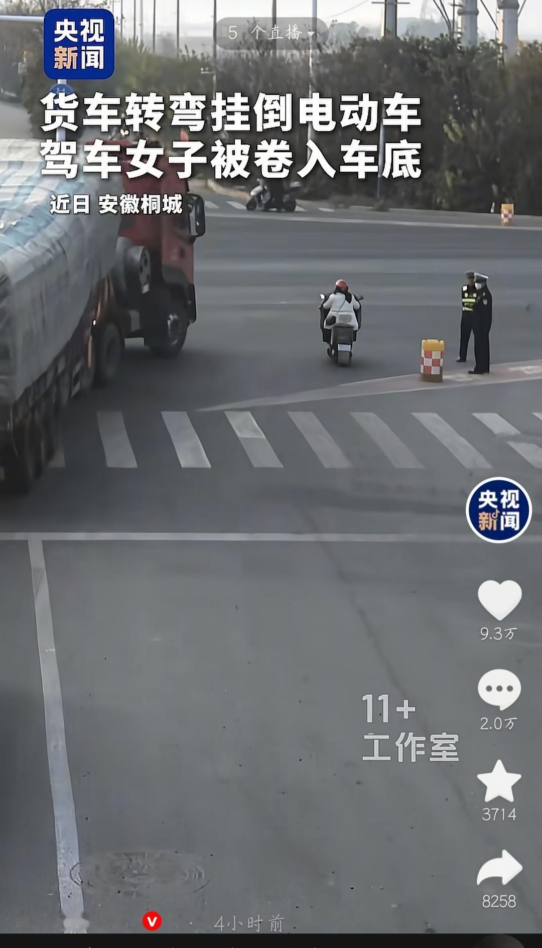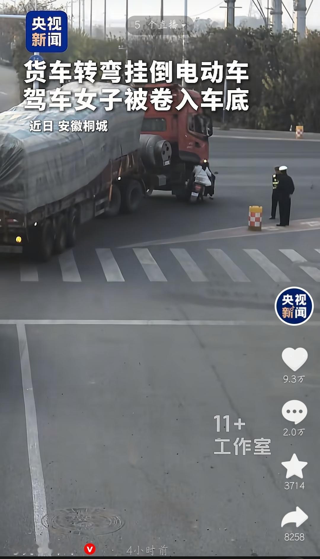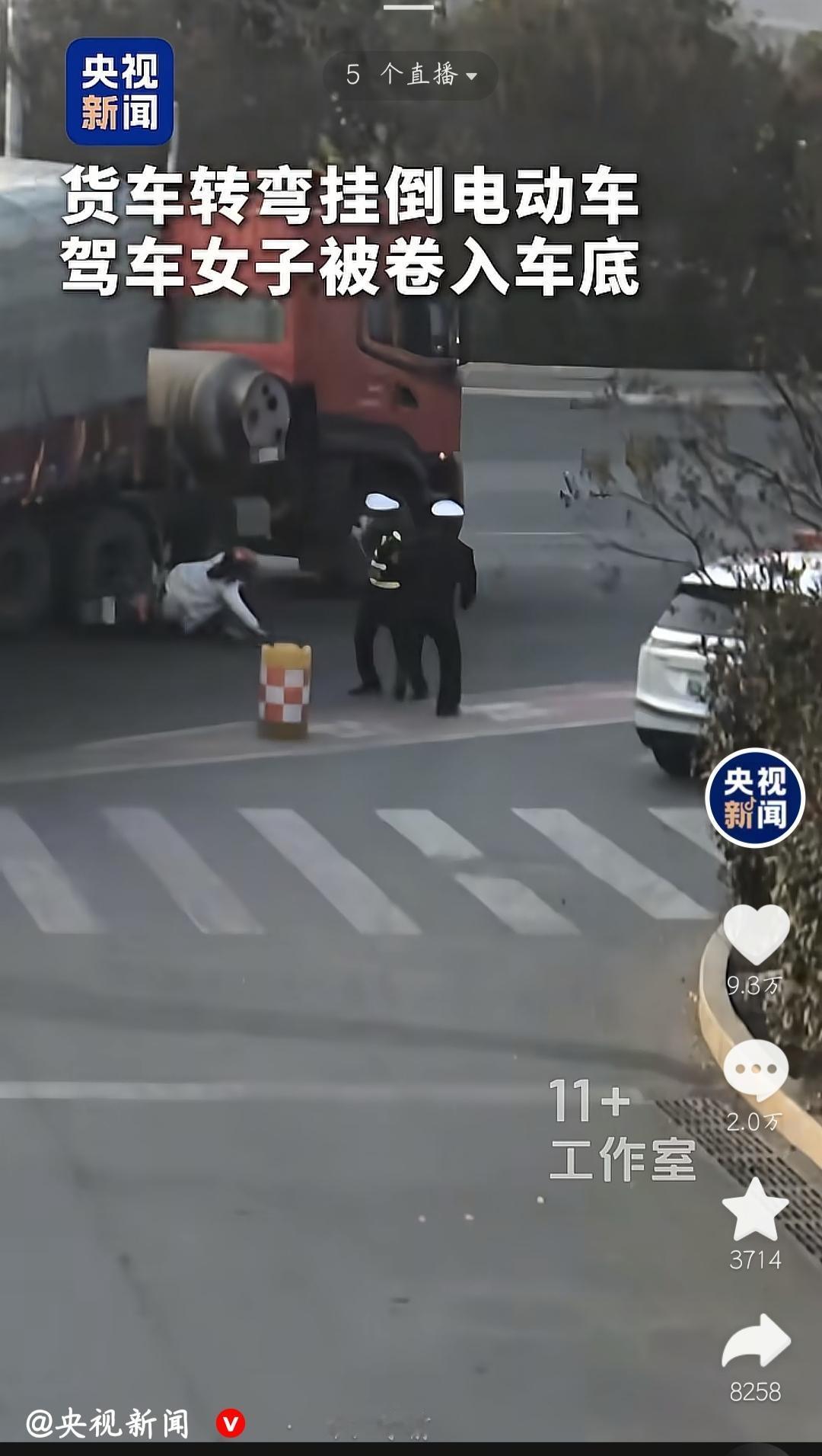 太可怕了,骑车过马路一定要远离大货车!近日,一女子骑电动车过路口,大货车同时也在右转,正常我们觉得右转让直行,但大货车有视野盲区,根本看不到,他就不会让你,为了安全,一定要让大货车先走,还好这次交警在旁边,及时叫停大货车,该女子只是轻微擦伤! 这一事件再次告诫我们,走路、骑车等过马路的时候,一定要观察仔细后再通过,特别是遇到大货车,不要自认为他们会让,要为了自己安全等一等! 交通出行 交通事故