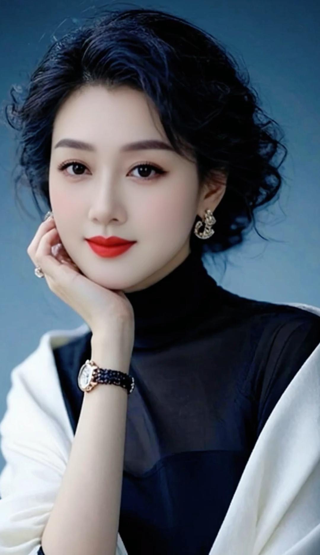 优雅黑丝绒连衣裙,搭配珍珠耳环,尽显高贵气质!高雅气质美女 美女人像群