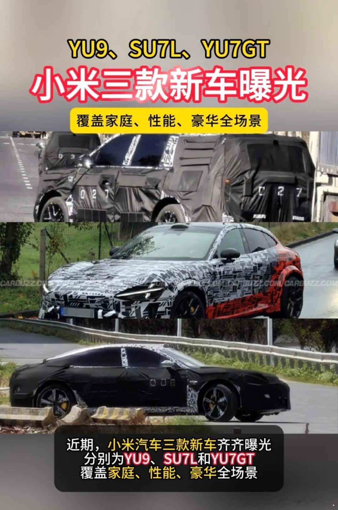 小米三款新车齐曝光"米雷德"YU9是增程大七座旗舰,车长超5.2米+大约400km纯电续航,小米做这台车就是奔着全家人一起长途续航去的;YU7 GT是性能SUV,纽北刷圈狠货,听说有碳陶瓷刹车+宽体套件;最后这个焕新版SU7看谍照车身更修长了,小米的家族产品线正在快速完善,家用、性能全覆盖,毕竟销量在那摆着,反正期待一下"米雷德",网友的图片没一个丑的…… 小米汽车小米汽车小米su7小米yu7小米yu9新车新车