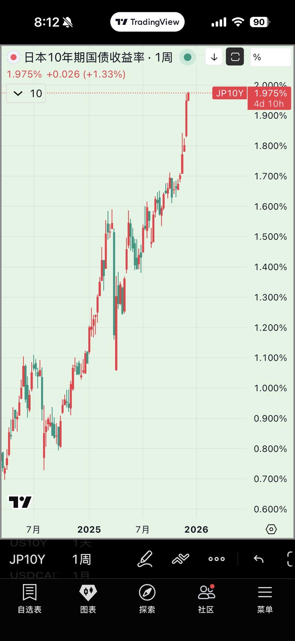 日本国债收益率飙升:市场“崩盘”信号? 是的,日本国债市场正经历剧烈波动,10年期收益率升至1.955%,为2007年7月以来最高。30年期收益率上涨2.5个基点至3.380%,这反映出投资者对日本银行即将加息的强烈预期。 截至2025年12月9日,10年期收益率小幅回落至1.96%,但整体趋势仍向上,30年期则维持在3.39%左右。这一“崩盘”式上涨(收益率上升意味着债券价格下跌)标志着日本长期低利率时代的潜在终结,但也引发了对经济压力的担忧。 市场定价显示,BOJ在12月19日会议上加息25个基点的概率达80%,这将是自2007年以来首次正式脱离负利率时代。日本银行行长上田和夫近日表示,对经济前景“有信心”,并将“仔细权衡”加息利弊,但未排除本月行动。首相高市早苗政府高层也暗示不会反对此举,尽管部分官员对时机持谨慎态度。 日元套利交易面临逆转压力——投资者借低息日元投资高收益资产如美股,收益率升至1.96%,缩小美日利差或引发资金回流日本,推动日元升值。 这可能放大全球波动,尤其对新兴市场和加密资产,如比特币近期跌破10万美元。