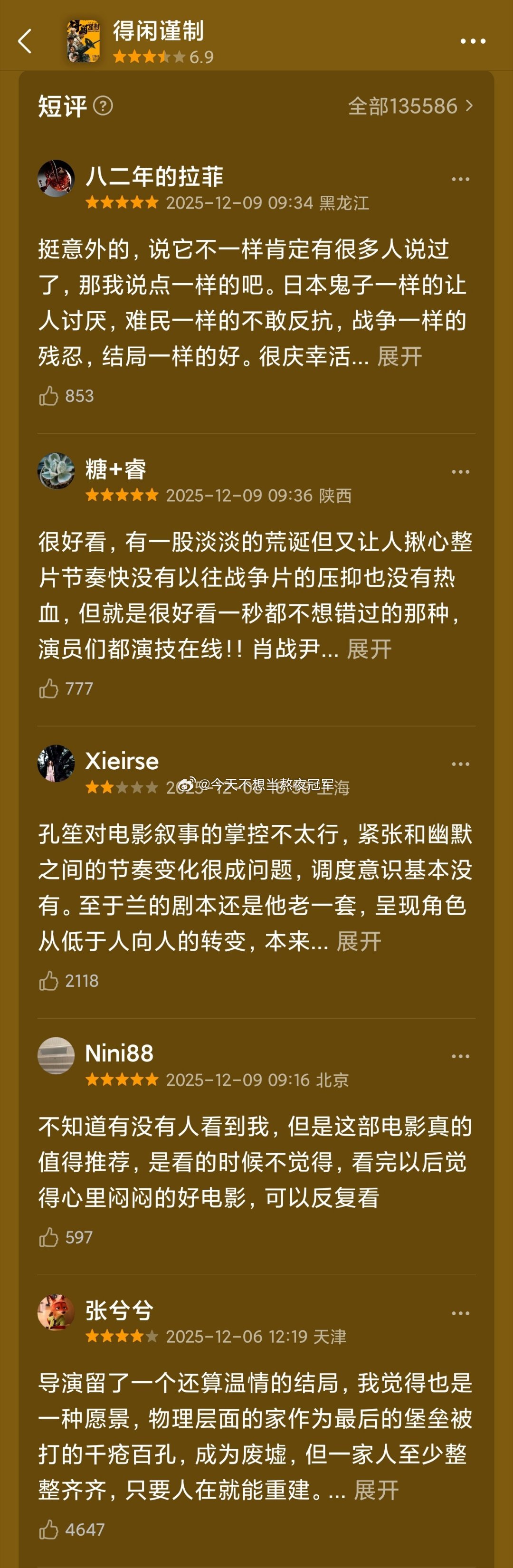 肖战《得闲谨制》开分6.9分,近17w人打分,13w条短评。感觉这个评分恰当吗