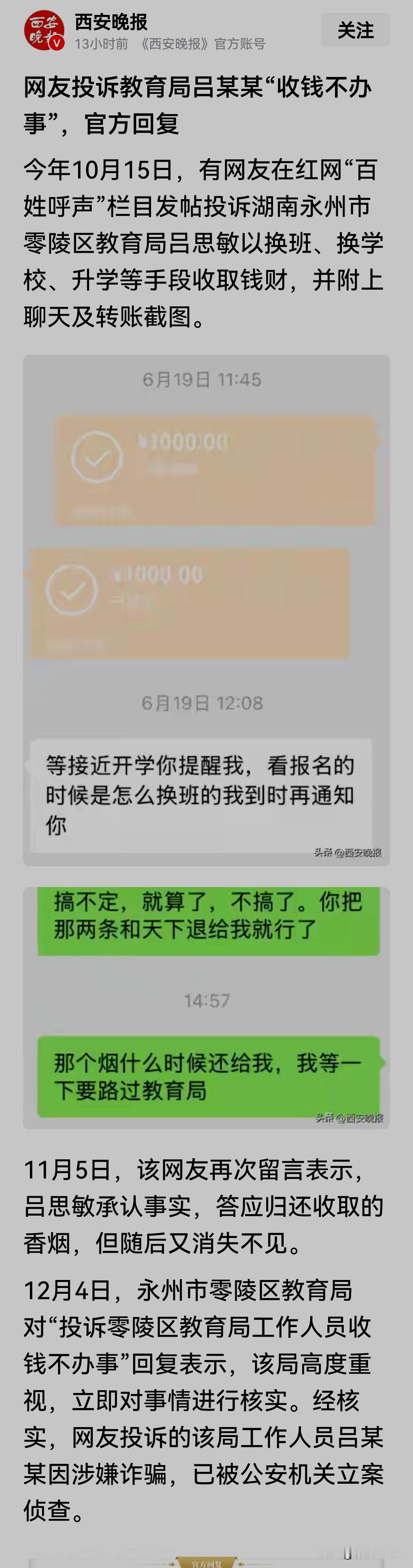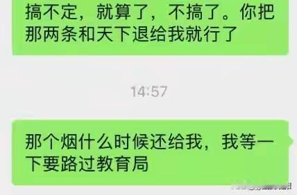 送礼的人和收礼的人,他们两个没有一个讲“武德”的! 对于收礼的人来说,收了人家的钱和烟,既然办不成事,主动把钱退给人家不就行了。即便把烟吸了,折合成钱退给人家也行呀。这下好了,为1000元钱、两条“和天下”的烟,搞得全国都知道了。还有,收钱的人胆子也太大!人家都是收现金,他既然让转账给他。 对于送礼的人来说,故转账送钱,感觉这是故意的,有了证据,什么时候都可以拿捏他。再说,人家没有给你办成事,1000元钱当然应该要回来。但是,烟酒不分家,说不定烟人家已经吸了,再要求退回两条烟,就有点过了。