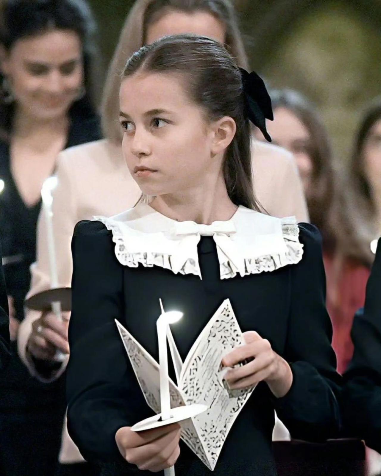 当地时间12月5日晚的圣诞颂歌会,10岁的夏洛特公主美美现身。威廉王子带着乔治、夏洛特和路易来到威斯敏斯特大教堂与主持活动的凯特会合。见到妈妈时,夏洛特绽放甜美笑容。 夏洛特有一头如丝绸般顺滑的天然金发,遗传自父亲威廉。和哥哥乔治相比,她更活泼开朗,情感外放。凯特患癌后,小公主愈发成熟。凯特一身森林绿造型优雅贵气,旧衣新穿也十分出彩。许久不见,乔治长高有王储范儿,路易也成了小绅士,夏洛特公主则愈发美丽动人。