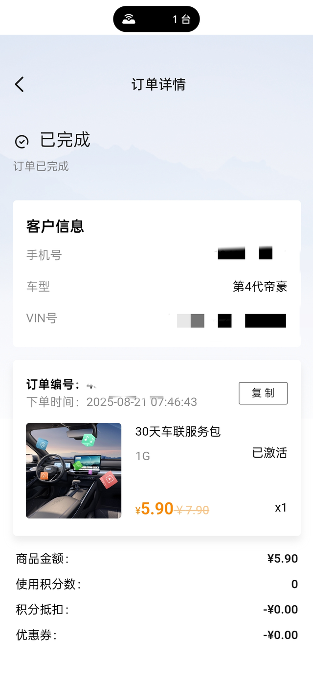 22款四代帝豪断网 娱乐流量断网,截止目前也有十几天了,车今年3.5年左右,以为流量到期,充了1个月的流量验证还是不行,只能使用基础流量,4儿子说是后台问题,几天过去了也没解决,结合这辆车之前发生过的故障,我女朋友都说下次再买JL是狗