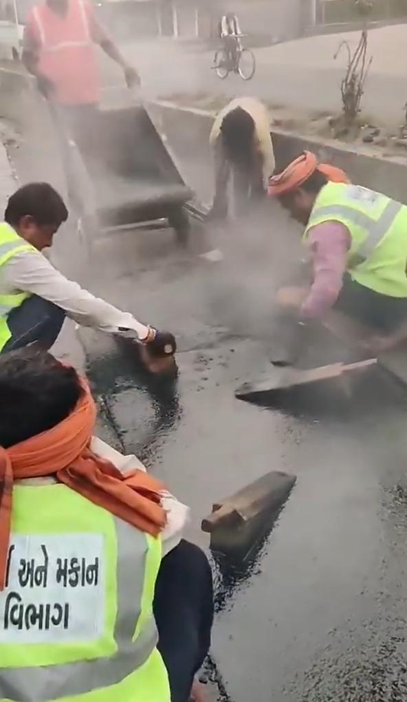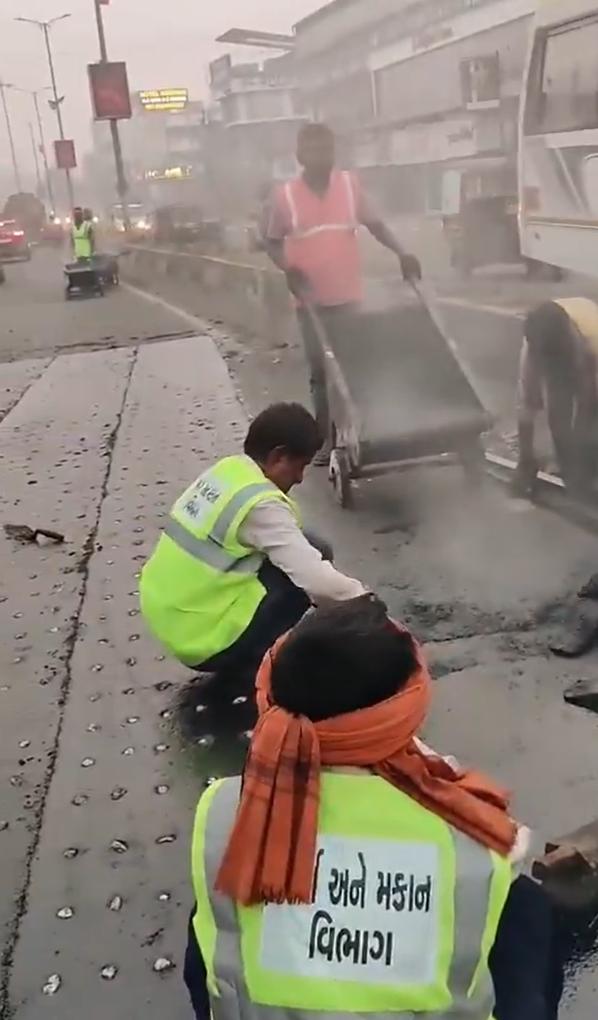 "我们是世界第三大经济体,但我们的道路建设方式却与第三世界国家相差无几。" 记录了在古吉拉特邦一条道路上进行的人工沥青修补作业。这是一种劳动密集型技术,使用手工工具对桥面和城市路面的坑洼进行快速且经济高效的修补,这种技术在印度分散的基础设施项目中很常见。 印度2025年的名义GDP预计将达到4.3万亿美元,使其成为全球第四大经济体,但其640万公里的公路网络(仅次于美国)仍有40%未铺设路面,这凸显了世界银行数据显示的公平发展方面的差距。 该帖子获得了85.7万次观看和511条回复,引发了关于经济悖论的讨论。用户们将人工修补方法创造就业机会的优势与呼吁使用先进机械设备以匹配印度每年5万公里的高速公路快速扩张的需求进行了对比。