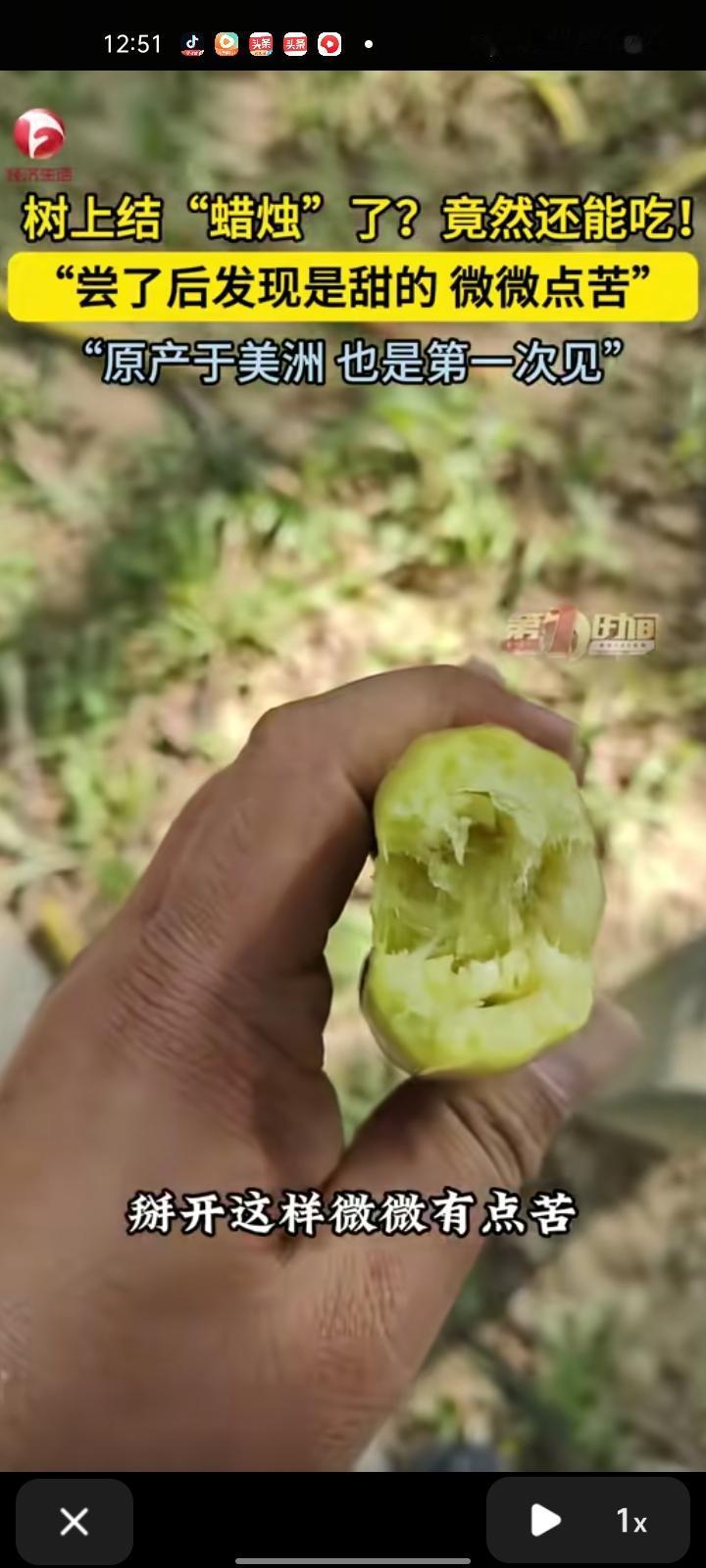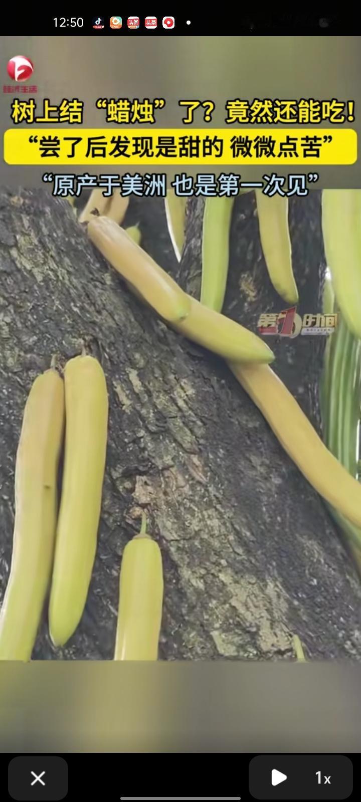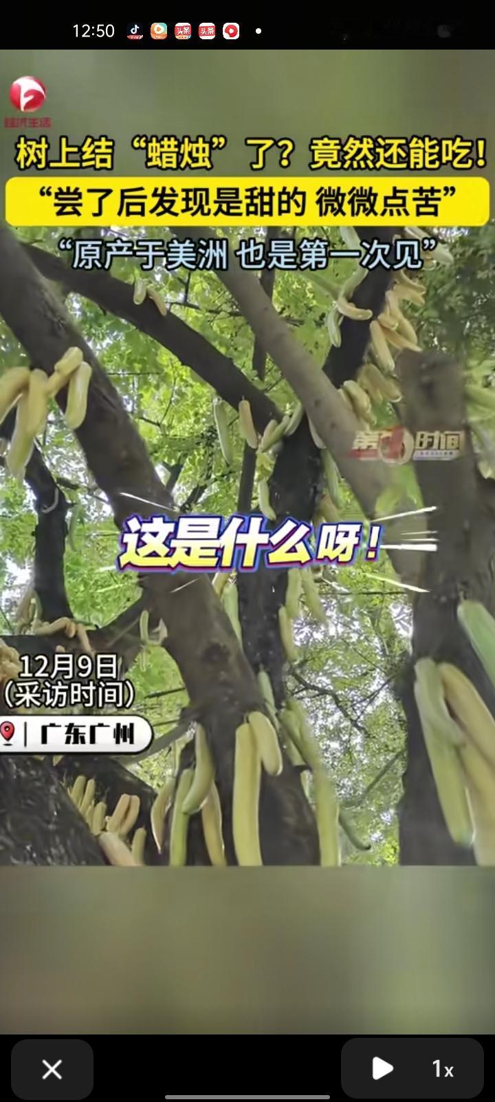 12月6日,广东广州。网友发视频称,大树上结“蜡烛”,而且还能吃,味道微苦但很甜。搜了才发现,这棵树叫蜡烛树,原产于美洲,还是第一次见。