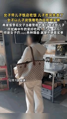 太奇葩了吧 浙江饭馆这幕真把我看傻了!12月7号中午,白衣大姐带着儿子进店干饭,娃吃完先溜了,她转头就跟老板叫板:“我儿子说你家菜难吃到想吐,这单我不买!” 老板当场懵圈,明明亲眼见那娃扒饭跟抢似的,吃得那叫一个香,怎么转头就成“难吃到逼哭”?大姐还振振有词:“那是我硬逼着他吃的,不然早撂筷子了!” 老板好说歹说,说卫生菜品有问题咱认,口味这东西千人千味,总不能凭一句话就拒付吧? 没辙只能报警,民警来了都忍不住想笑,当场拨通她儿子电话,那边脆生生一句“还行啊”直接打脸!可大姐还死扛,说要把剩菜打包送质监局检验,民警忍不住戳破:“打包也得先付钱啊,是不是没带够?” 她立马掏出手机亮余额:“微信里800多呢,有的是钱!” 真搞不懂这操作,觉得不好吃下次不来不就完了?花几十块钱买顿饭,非要闹到报警,既丢面子又费时间,图啥呢?口味不合能理解,但恶意拒付就是耍无赖了吧?换作是你遇到这种情况,会给她买单吗?餐馆奇葩事