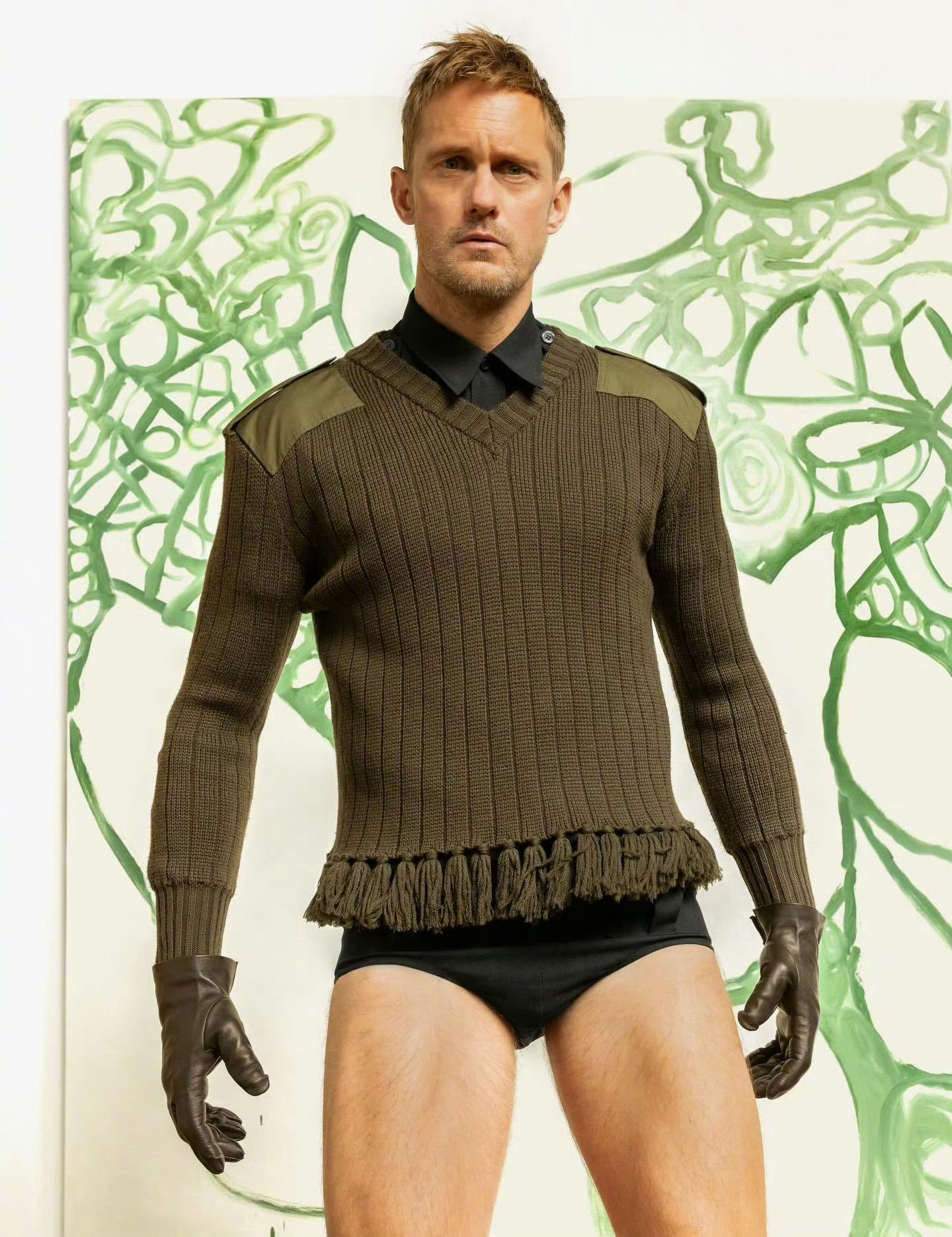 DUST 杂志2025秋冬刊封面大片,“E大” Alexander Skarsgård,性感透视、皮裤皮靴… 他也是什么造型都敢诠释。