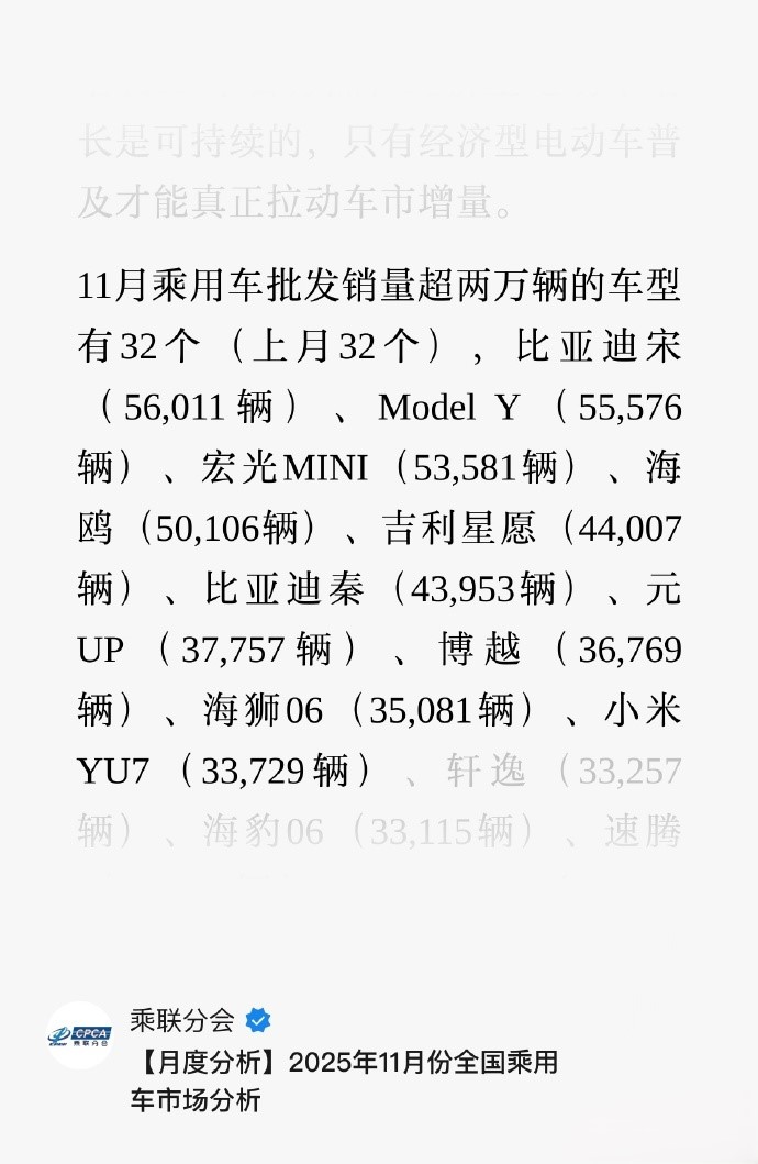 小米汽车现在看来是非常成功了 目前已经开始盈利,11月销量超4.6W,YU7单车销量近3.4W台,SU7至今也还是20W以上市场的第一。 明年应该还会上3台车,伪装车已经曝光了,大型全尺寸SUV+高性能SUV+行政豪华轿车,产品线一下丰富起来了,坐等明年全品类打击