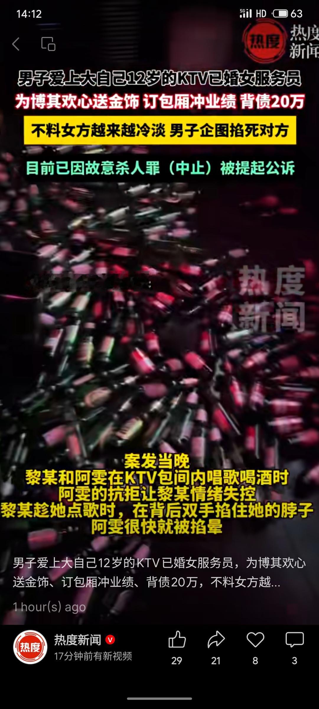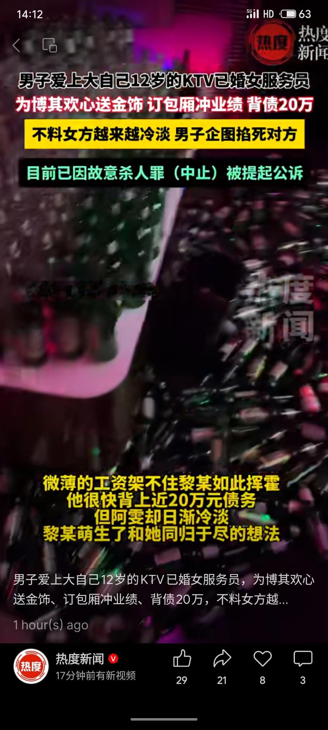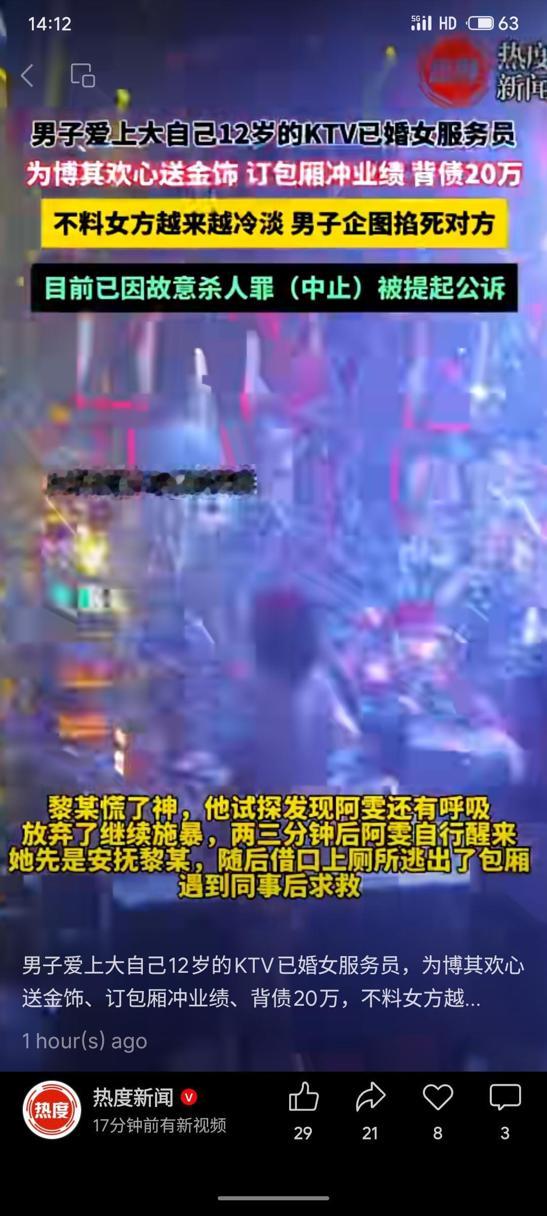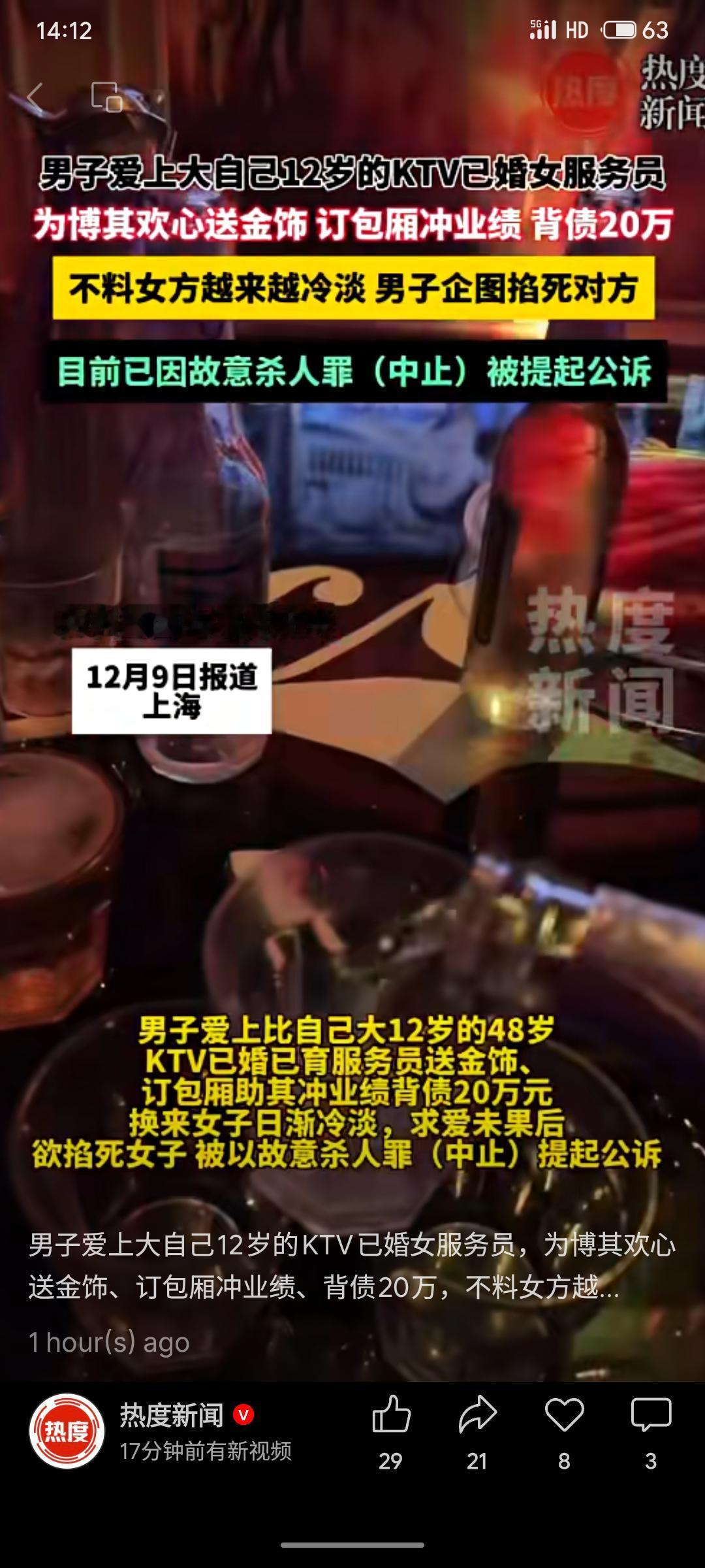 上海一男子为追求比自己大12岁的已婚KTV女服务员,送金饰、订包厢助其冲业绩,负债20万元。因对方态度日渐冷淡,其在包厢内情绪失控将女子掐晕,后中止犯罪。该男子现因涉嫌故意杀人罪(中止)被依法提起公诉。