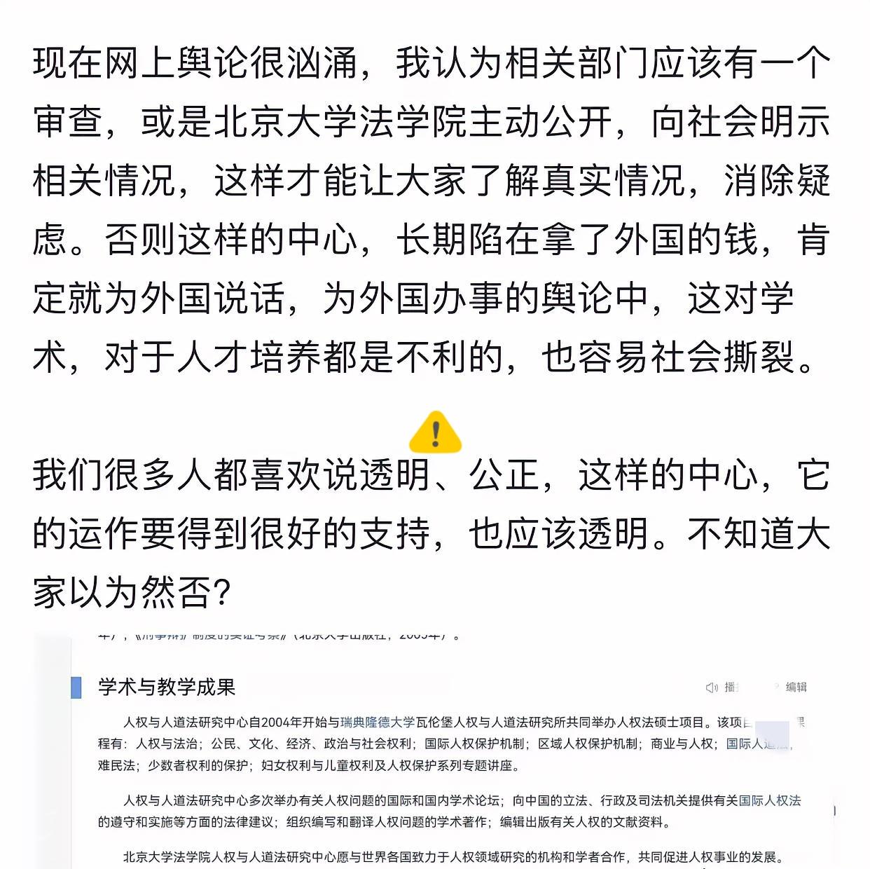 项立刚这次是真急了! 呼吁公开审查!喊话北大法学院主动公开,向社会明示相关情况。这事儿闹到现在,已经不是赵宏教授一个人的荣辱问题了,这是关乎北大“钱袋子”和“脑瓜子”到底属于谁的大是大非问题。 学术独立的前提是立场清白,拿了境外资助却不公开透明,难免让人质疑背后的利益捆绑。 北大作为顶尖学府,培养的是国之栋梁,若资金流向、合作细节藏着猫腻,不仅砸了百年招牌,更会动摇公众对高等教育的信任根基。 主动公开从来不是丢人事,反而能自证清白,总比被舆论推着走、越抹越黑强。项立刚的喊话戳中了要害,学术不能成“利益交换场”。 你觉得北大法学院会正面回应公开诉求,还是继续沉默?