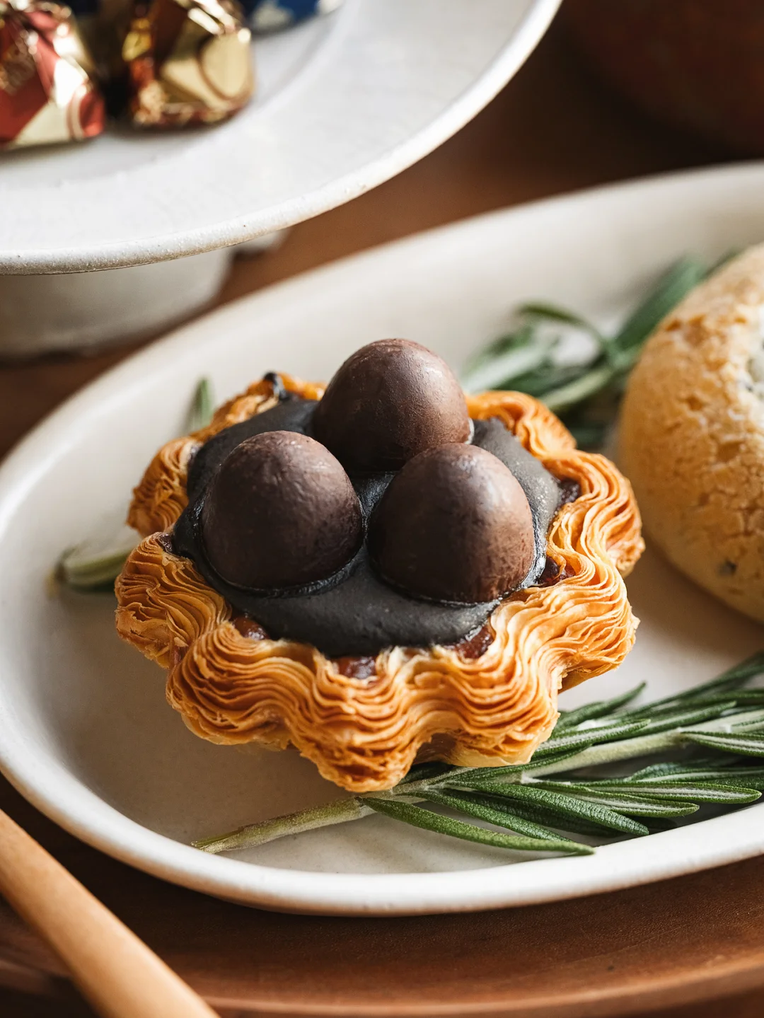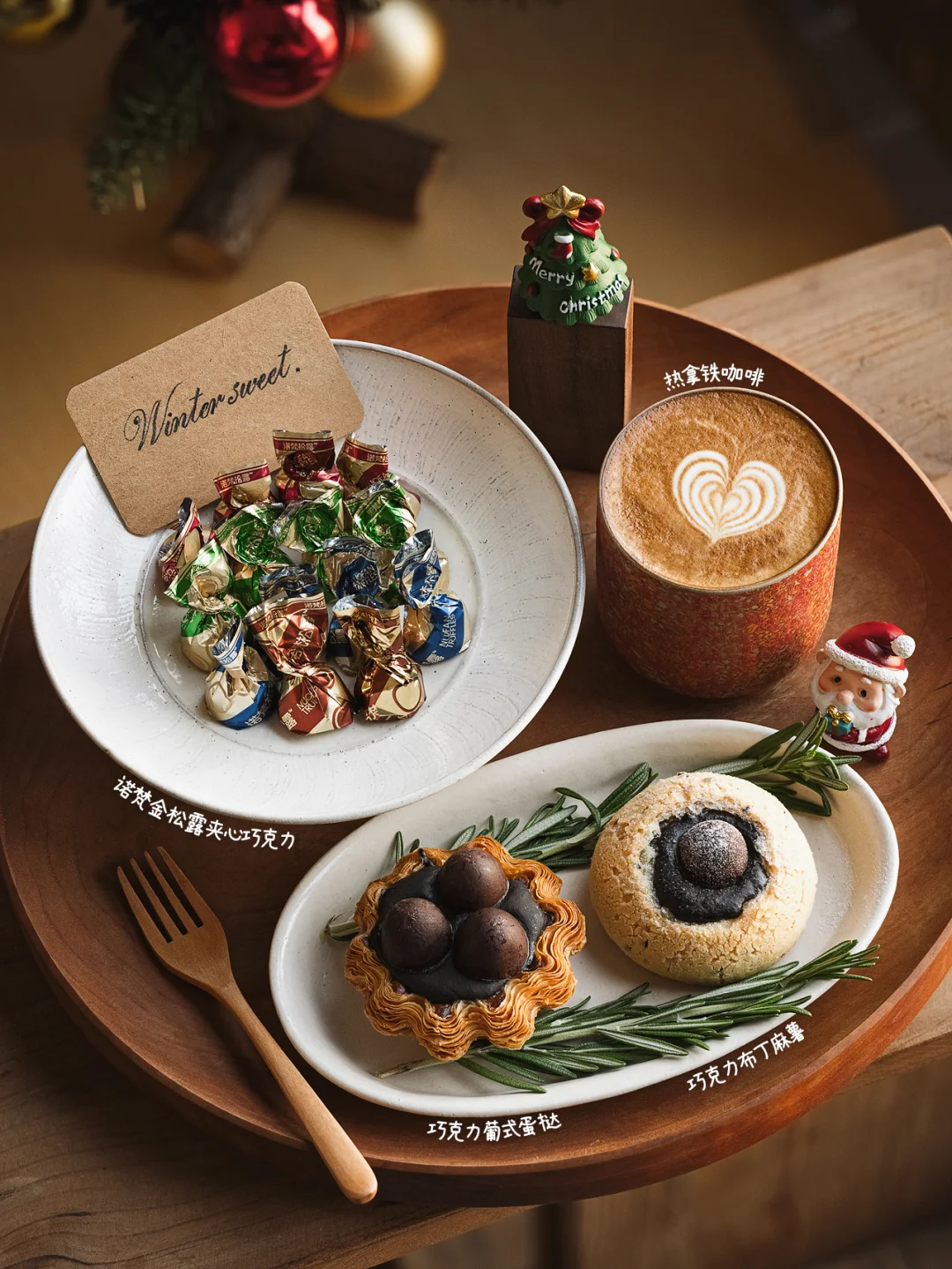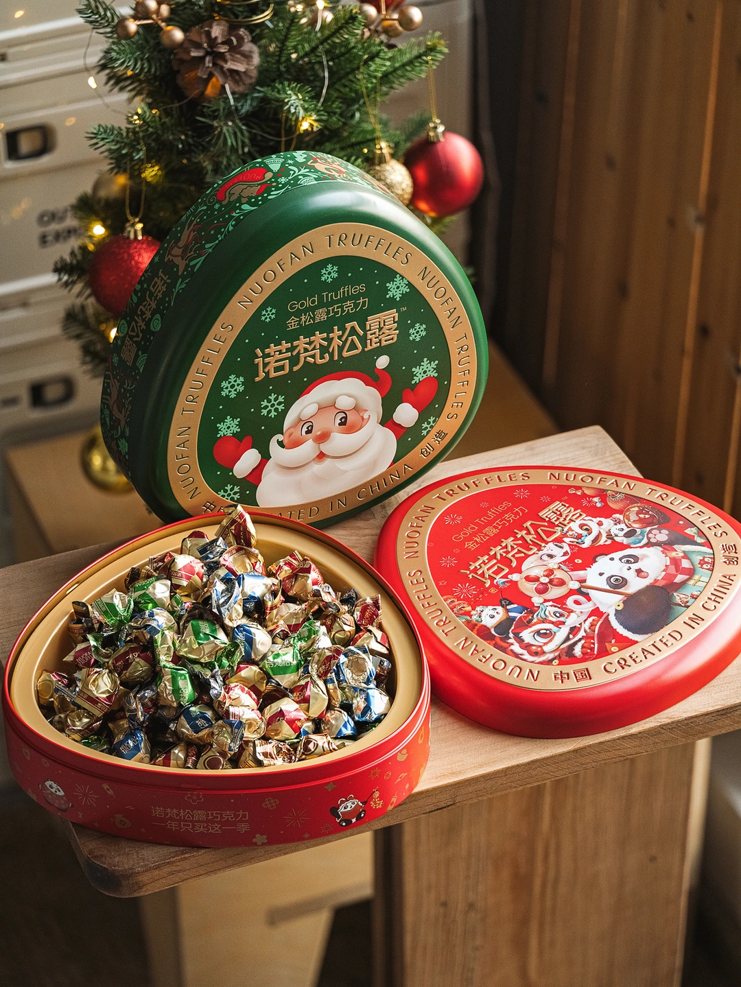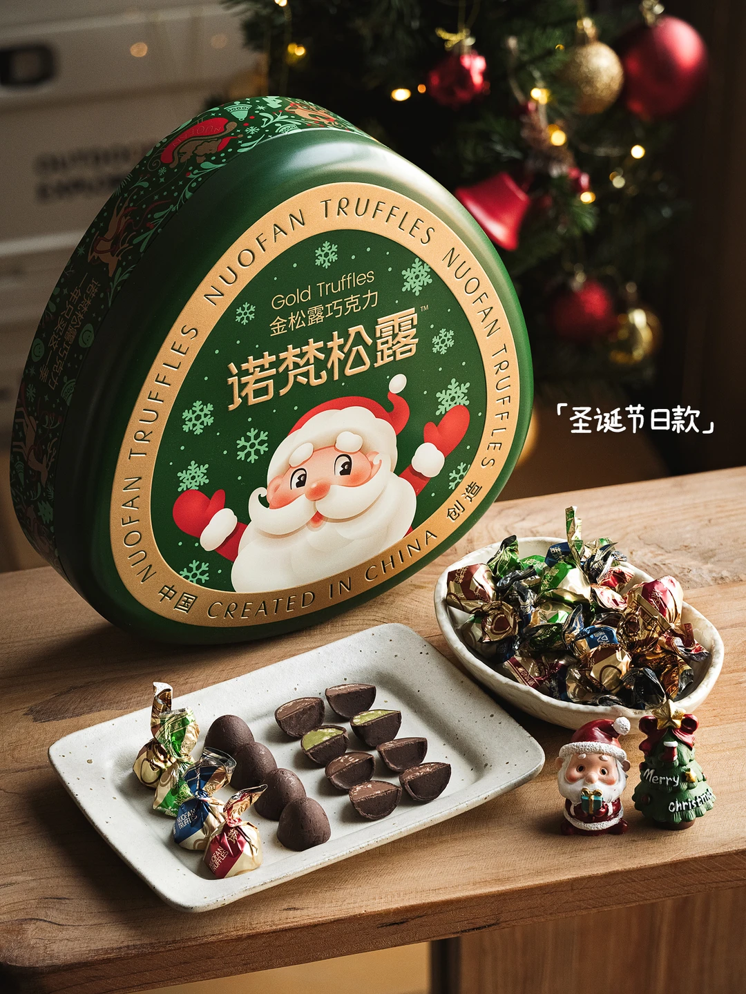 🍫诺梵金松露巧克力|☕️热拿铁咖啡 🥧巧克力葡式蛋挞|🥧巧克力布丁麻薯 - 圣诞氛围的下午茶怎能少得了巧克力 可可的美拉德色系搭配红绿真的太美 用来自诺梵的金松露巧克力点缀甜品 搭配一杯热拿铁真是惬意又满足~ - 诺梵金松露夹心巧克力一直是年货的热门 甄选来自西非加纳黄金产区的可可原料 而且是纯可可脂,先苦后甜有层次 夹心与外壳1:1的浇筑工艺让口感平衡细腻 四种丰富的口味,用来招待朋友再合适不过啦 还有圣诞款和新年款两种精美礼盒 不愧是年末送礼绝佳选择~ -
