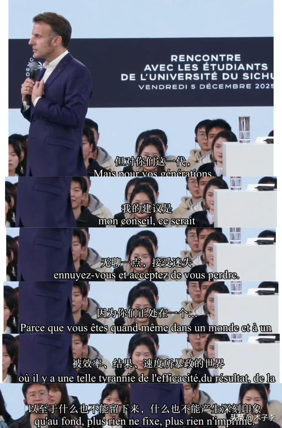 马克龙建议中国学生“无聊一点,接受迷失” 马克龙这么说我感觉很搞笑啊,其实归根结底,中国所谓的卷,从某种程度上来说就是在中国社会里拼,就会有回报,只不过拼的人太多了回报率降低了,并且这个迷失我是真的不能理解,人其实不能难道糊涂的,你糊涂就真有人拿你当耗材的[抠鼻]