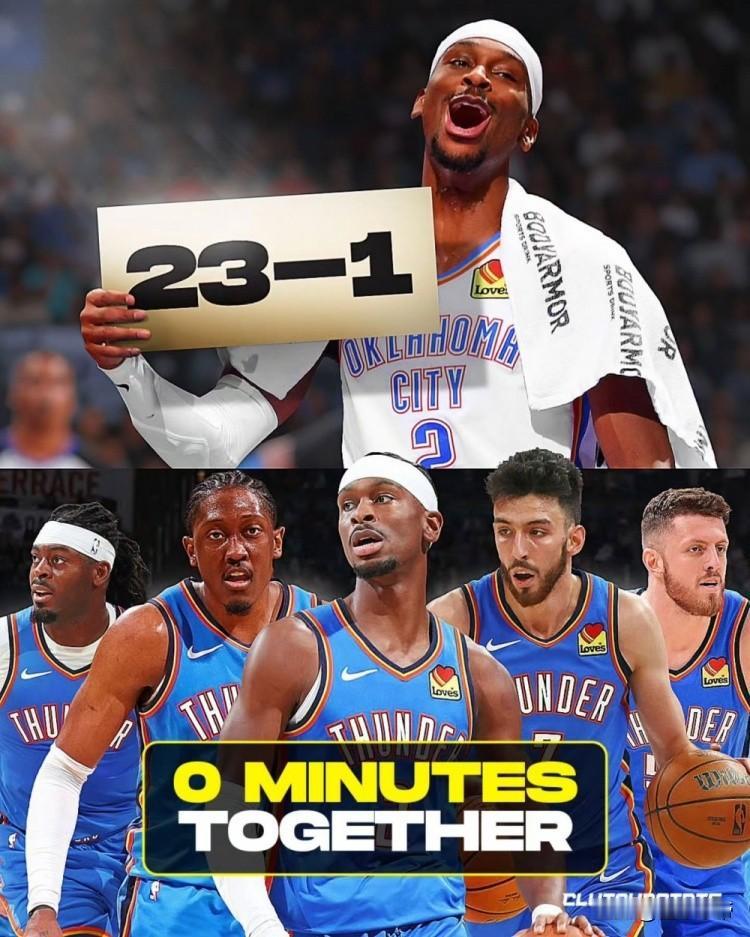 雷霆最强阵容还没有合体,就已经打出了23胜1负的史上最强战绩! 懂球的都知道,雷霆上赛季夺冠的首发阵容为:亚历山大,杰伦-威廉姆斯,霍姆格伦,哈腾,多特,这也是雷霆明面上的最强阵容。 然而本赛季开始后由于二当家杰伦-威廉姆斯一直伤缺,雷霆的首发阵容一直没有合体,好不容易等到杰伦-威廉姆斯伤愈复出,哈腾又受伤了,又错过了合体的机会。 现在雷霆阵容中伤病管理的球员有亚历山大,乔,哈腾,多特,卡鲁索等球员,但是却依然神挡杀神佛挡杀佛豪取15连胜,现在拿到了23胜1负的战绩遥遥领先。 本赛季的雷霆绝对是NBA史上最强的球队,每场比赛都赢得相当轻松,每个球员都能超常发挥,不管缺席了哪个球员,都不影响球队的实力,这才是最恐怖的,比当年73胜的勇士更有统治力。