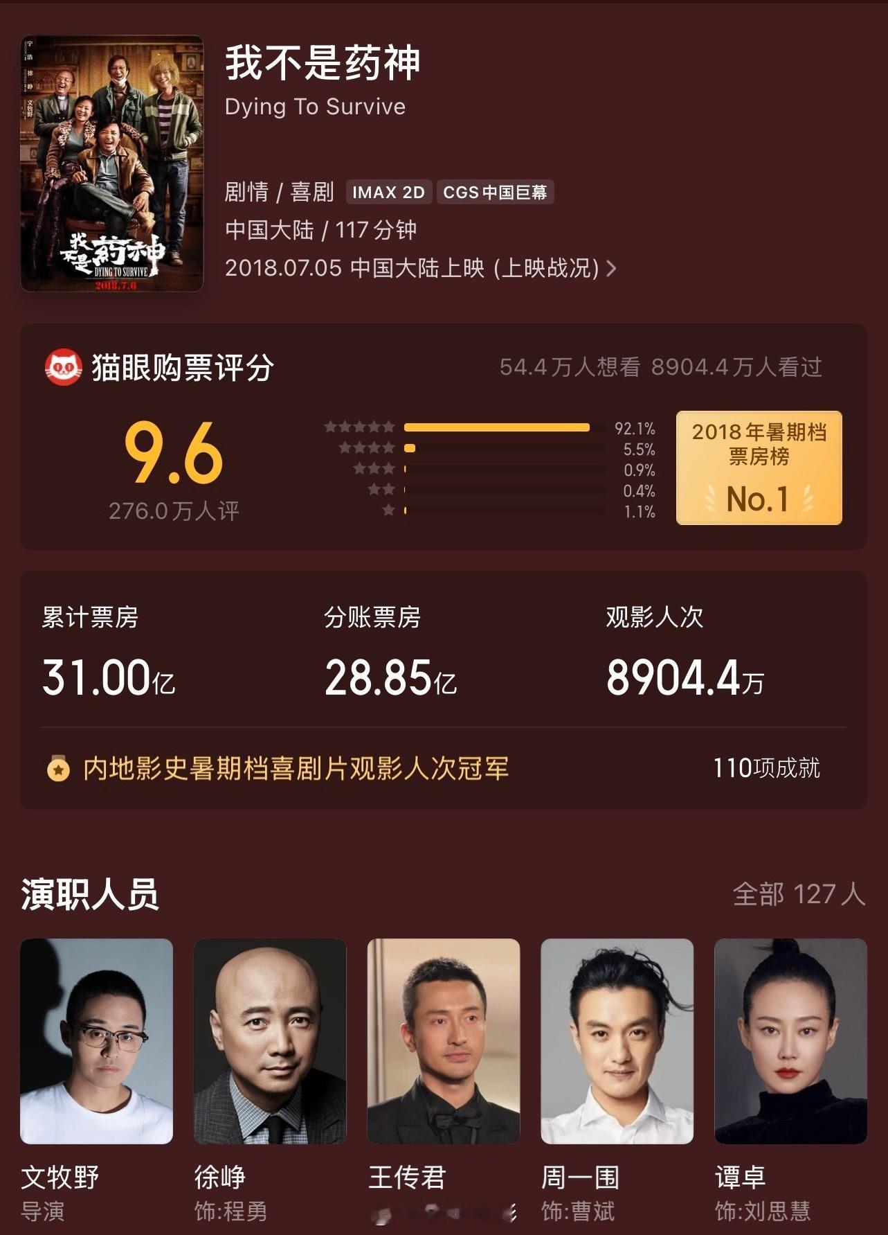 21世纪最具影响力的华语电影 说起21世纪最具影响力的华语电影,我认为入围提名名单的电影,得从卖座、影像价值、话题讨论度几个维度去评选。我首推《我不是药神》,为什么呢?累计票房31亿、观影人次超8900万、2018年票房季军,卖座数据是很高。我回忆起《药神》在18年上映时的情况,映前和刚上映时,这片儿是被业内低估,同样也没被影迷看好,可上映了些日子,大家纷纷涌进影院去看。医疗题材的电影,在当年算稀缺,可谓是前无古人了。从题材类型的角度来看,片子推动了现实主义题材电影的市场。片儿证明了,能打动人心的片子,就是优质电影。跨年电影愿 看病难,药品价格高,正是中国老百姓去医院看病时,遇到的现象。时至今日,回想起片子里的台词,仍然句句戳心窝。“4万块1瓶,我病了3年,吃了3年,为了买药,房子没了,家人也拖垮了,谁家还没个病人,你能保证一辈子不生病吗?我不想死,我想活着。”“世界上只有一种病,就是穷病!”老妇和张长林说的话,是站在各自的立场里,但想想挺让人难受的。在疾病面前,人性是脆弱的,得了病的人,谁都想痊愈,心底的声音是想要健康。文牧野导演、徐峥监制+主演,和其他几位主演,演的太催泪了,我看一次流一次泪。我认为他们带来的表演是真诚的,主要是这个片儿的剧情故事自带泪点。徐峥演的程勇,在片中N个片段里,都有令人动情的戏份,重点是没强煽情。从卖药,到被病患触动,赔钱卖药,他从售卖神油的小商贩,成了拯救数以万计人的药神。《我不是药神》是部现象级的电影,现实主义力作,能载入影史的,也是徐峥电影生涯的代表作,把他推向了巅峰。虽然徐峥后面出了几部电影,创作没有懈怠,但我认为《药神》是他最棒的电影,综合水平最高的。爆火出圈的电影,每年都有,但像这片儿的,给类型片树立榜样,起到开辟作用的真的少之又少。电影我看了三遍,所以当我看到这个话题时,最先想到的电影便是《我不是药神》,我觉得影片实至名归,是符合title的。