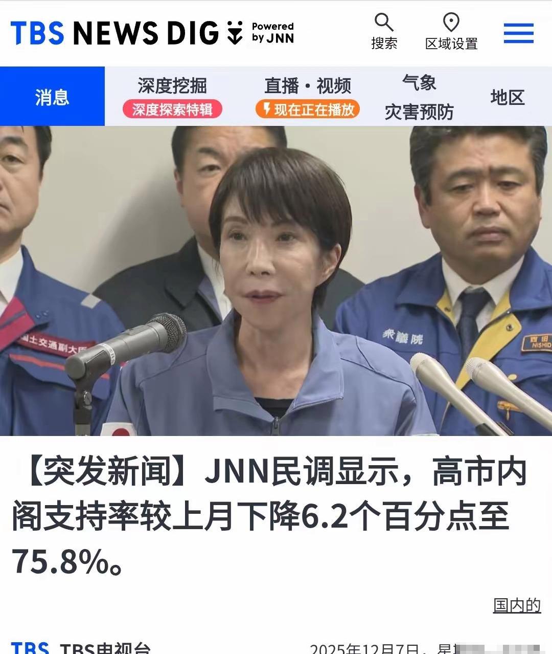 高市早苗支持率大跌6%,但支持者仍超75%;日本右翼支持打仗,却不想出钱 多家日媒报道,12月7日日本某电视台公布了高市早苗的最新民调:上回她支持率还82%,这回直接跌了6.2%,但仍有75.8%;不支持率涨了6.4%,第一次超过20%。 更有意思的是,55%的日本人觉得高市说的涉台糊涂话没问题,27%觉得有问题;还有51%的人担心中日关系,46%的人不担心。 为啥担心关系还支持她的危险言论?跌了6个点还能稳在75%以上?其实原因很简单。 核心就是高市早苗摸准了日本右翼的心思,也抓住了不少老百姓的糊涂想法。 高市打小就受军国主义影响,满脑子右翼念头,多次参拜靖国神社,还不承认南京大屠杀、慰安妇这些历史事实。 她能上台,全靠自民党这些右翼政党撑腰,上台后还在台湾问题上乱说话,把主意打到咱中国内政上。 她这套极端话,正好对上了日本国内抬头的右翼情绪。这些年日本没彻底清算二战罪行,不少人像高市一样对战争没愧疚感,年轻人还被“国家正常化”的说法忽悠,觉得日本该“硬起来”。 所以她一开始支持率能冲到82%,全靠煽动民族主义情绪。但为啥又跌了?因为她的把戏露馅了,老百姓发现跟着她没好处。 最直接的就是经济受影响,以前日本水产品大多卖给中国,现在出口跌了90%还多,扇贝都卖不出去,渔民苦得不行。 再加上她丑闻不断,任命有非法捐款记录的人当大臣,还收台湾的贵重礼品,这些事曝光后,不少支持者寒了心,支持率自然就下来了。 可就算跌了6个点,75.8%的支持率还是很高,说明日本右翼根基还很稳,不少人还被蒙在鼓里。 更可笑的是,这些支持高市强硬路线的右翼,光喊扩军、打仗的口号,真要掏钱就变脸。 有民调显示,54.4%的日本人赞成加军费,但一提要增税凑钱,超过一半的人又坚决反对,这不是明摆着耍无赖嘛! 高市政府为了把军费提到GDP的2%,到处凑钱,卖政府办公楼、动结余的钱,还打算涨个税、烟草税,可还是不够。 这笔钱最后还是要落到老百姓头上,但那些喊着强硬的右翼,压根不想掏自己的腰包。 就说日本渔民,不少人事先也支持高市,以为强硬有好处,结果水产品卖不出去、收入暴跌,才发现被忽悠了。 普通家庭日子本就不好过,再增税只会让物价涨、养老医疗福利缩水,日子更难。 其实这两件事本质就是日本右翼的虚伪和短视:高市为了保住位子,不惜煽动民族主义,拿中日关系当赌注,却解决不了经济和民生问题。 右翼想扩张,却不敢让民众承担成本。这种只顾自己政治利益、不管老百姓死活的做法,迟早要遭报应。 现在越来越多日本人醒过来了,高市不支持率超20%就是信号,还有上百人去首相官邸抗议,喊着让她辞职。 说到底,和平发展才是日本的出路,搞军事扩张、炒作敏感话题,只会让日本孤立无援。 右翼的虚伪把戏迟早会被更多人看穿,高市支持率下跌只是开始,再不改错,迟早要被钉在历史的耻辱柱上。
